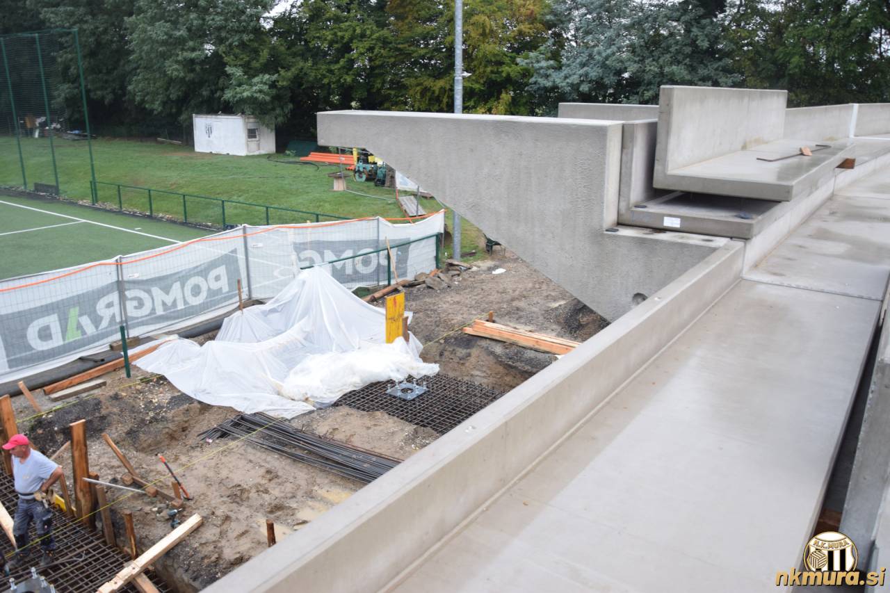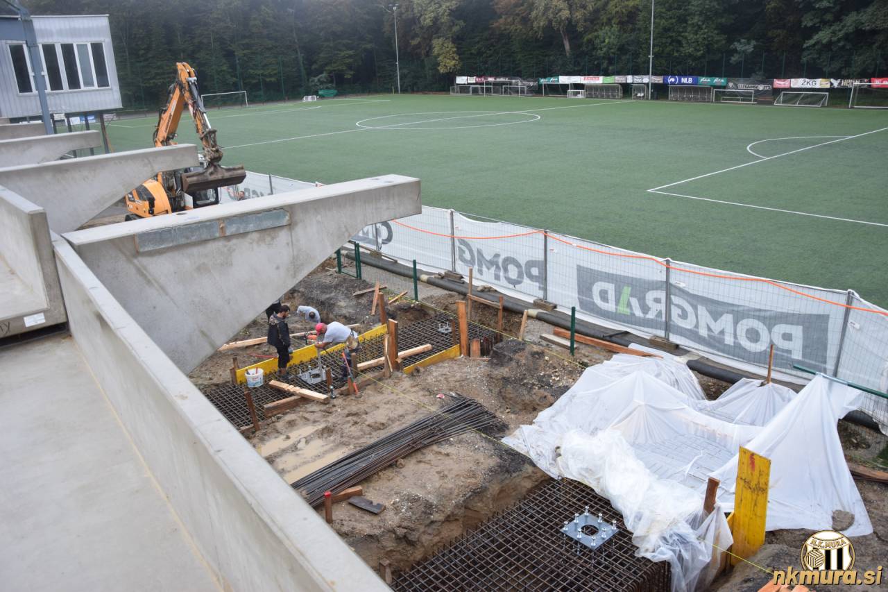 Za tribuno potekajo priprave na betoniranje nosilnih temeljev za streho. Avtorske pravice: nkmura.si Foto: Simon Horvat