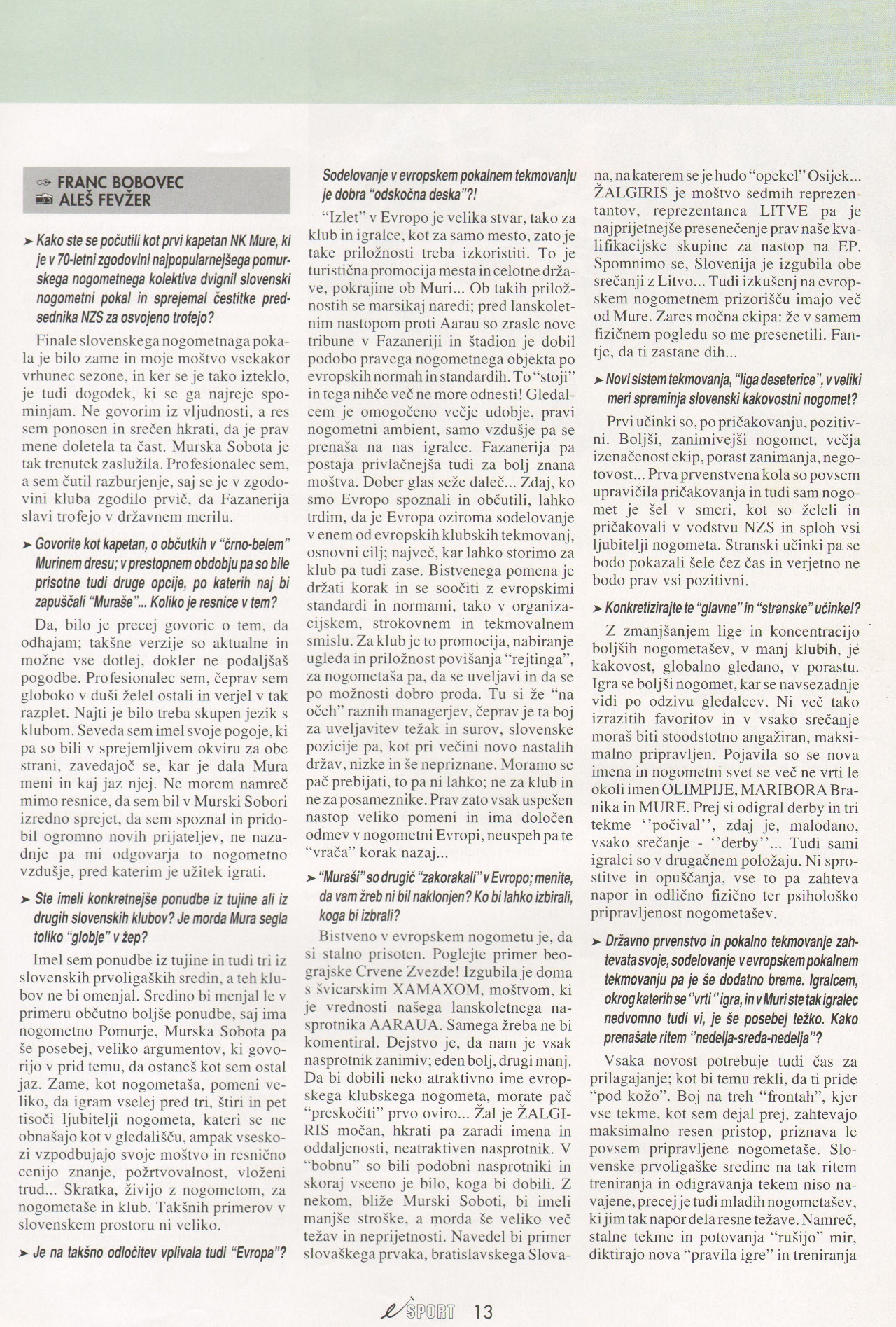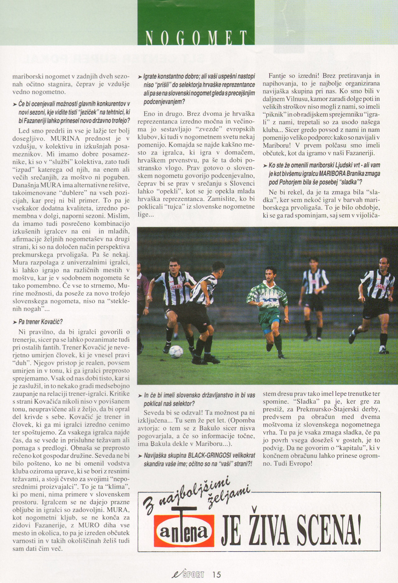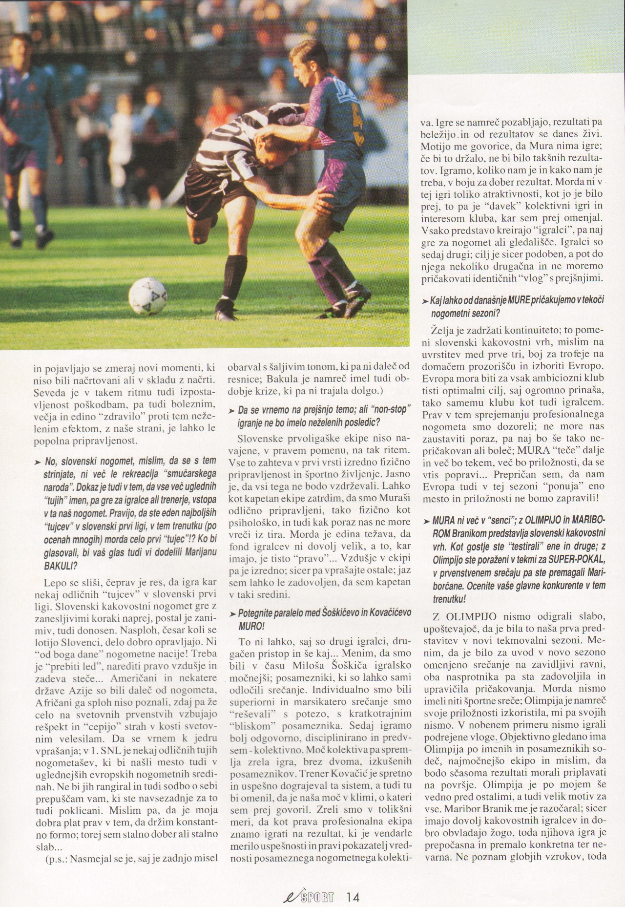 V intervjuju, ki ga je z njim opravil Franc Bobovec, je govora o različnih temah - ligi deseterice, štartu Mure v prvenstvo 1995/1996, evropskih izzivih, ponudbah o prestopu in še veliko več.