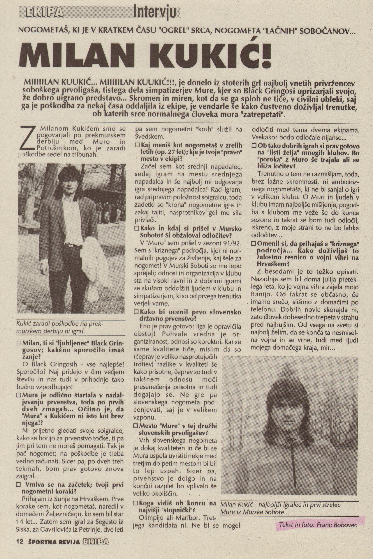 Objavljamo intervju, ki je nastal marca 1992 po tekmi Potrošnik Beltinci : Mura (2:0 za Beltinčane). Avtor intervjuja je Franc Bobovec, objavljen pa je bil v Ekipi.