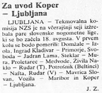 Tekmovalna komisija NZS je na svoji seji izžrebala pare 1. kroga 1. SNL v sezoni 1991/1992. Mura bo v prvem krogu gostovala v Rogaški Slatini pri Steklarju. Tekma bo 18. avgusta 1991.