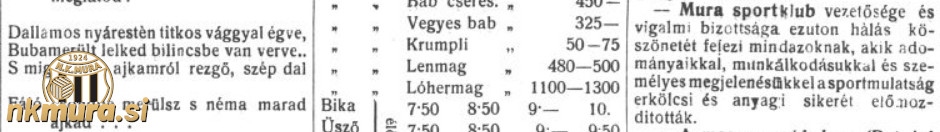 Športni klub Mura se je zahvalil vsem donatorjem in podpornikom kluba. Foto: Muravidek, 9. februar 1930