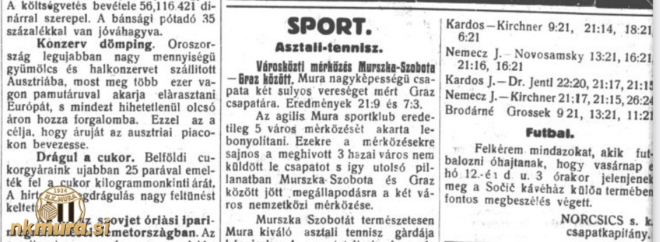 Kapetan Mure, Ludvik Norčič, vabi vse zainteresirane igralce, da se udeležijo sestanka, ki bo v nedeljo 12. aprila 1931 ob 15.00 v kavarni Sočič. Mura se želi v prihodnji sezoni 1931/1932, znova vključiti v organizirana tekmovanja in za poletje pripravlja množico pripravljalnih tekem. Kot je znano je trener Mure Milan Ferjan.