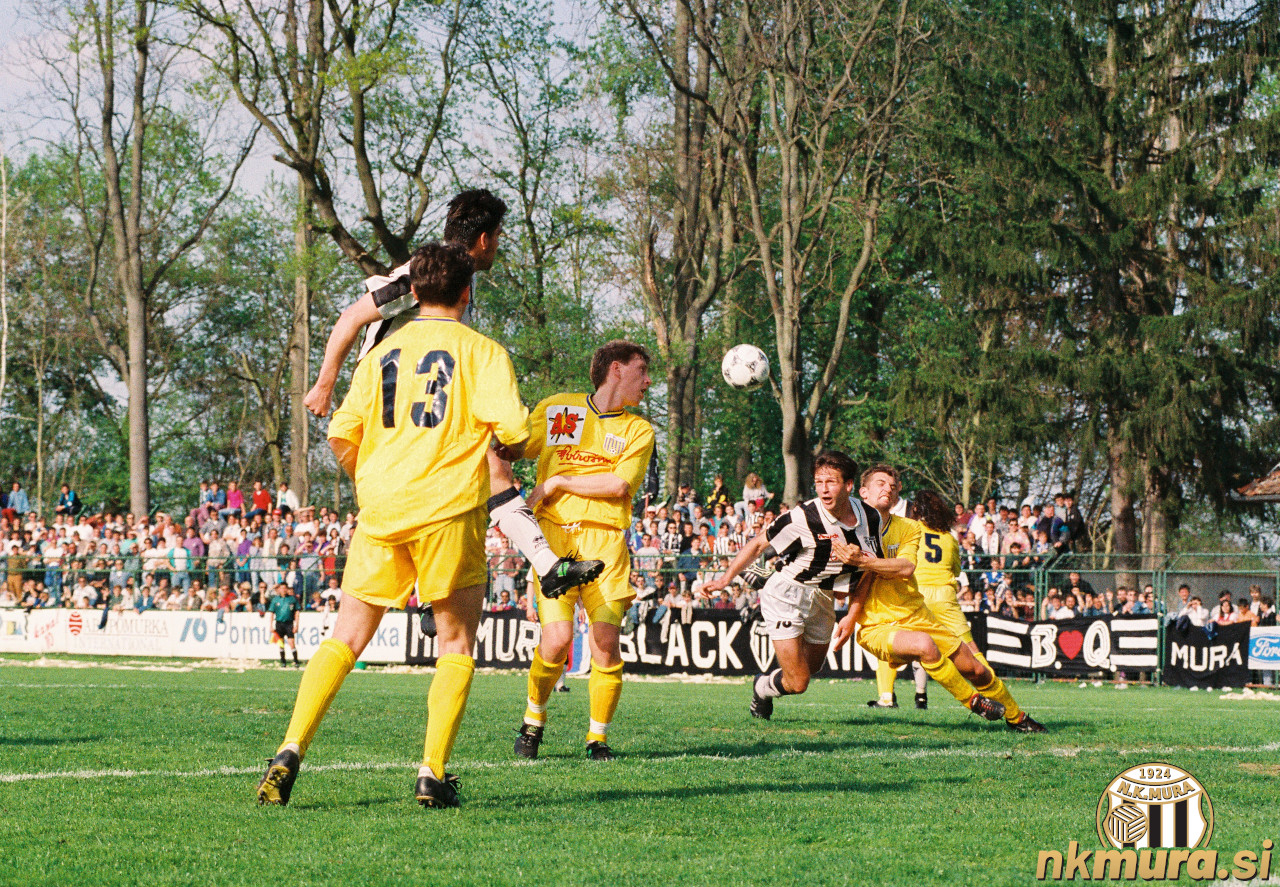 Prekmurski derbi med Muro in Nafto, ki je bil odigran 26. aprila 1992. Avtorske pravice: nkmura.si Foto: Vestnik