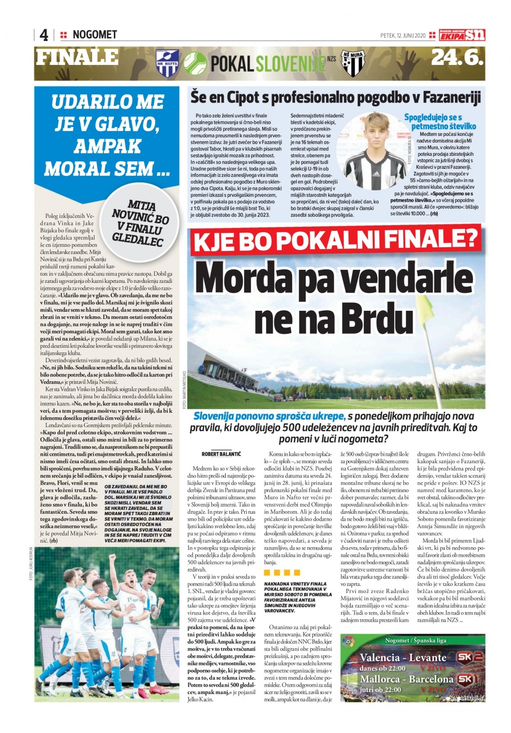 Nogometaši Mure se bodo 24. junija ob 17.30 v finalu pokala Slovenije pomerili z lendavsko Nafto. Glede na ugodno epidemiološko sliko v zvezi s korononavirusom, se poraja vprašanje kje bo pokalni finale. Polfinale je bil preseljen na Brdo, ker na stadionu niso smeli biti gledalci. Na finalu jih bo lahko 500. Kje bo torej finale - na Fazaneriji, Brdu ali v Mariboru?