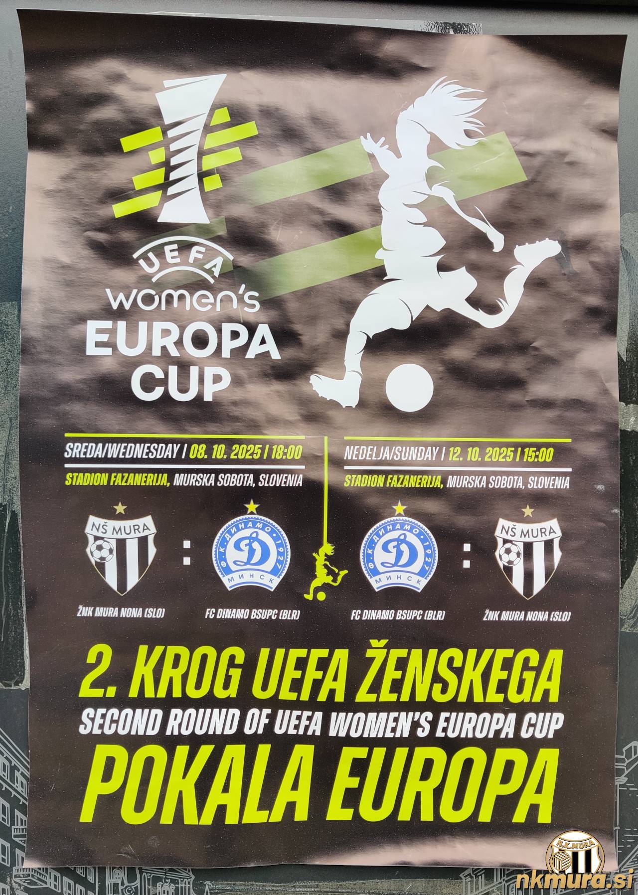 Nogometašice Mure čaka v sredo, 8. oktobra ob 18.00, prva tekma 2. kroga kvalifikacij za ženski pokal Evropa (UEFA Women's Europa Cup). Njihove nasprotnice bodo beloruske prvakinje Dinamo iz Minska. Povratna tekma bo prav tako na Fazaneriji, in sicer v nedeljo, 12. oktobra ob 15.00. Želijo si velike podpore s tribun, zato so se v klubu lotili akcije "Postavimo rekord na ženski tekmi". Cilj je namreč postavitev rekorda obiskanosti ženske nogometne tekme v Sloveniji.