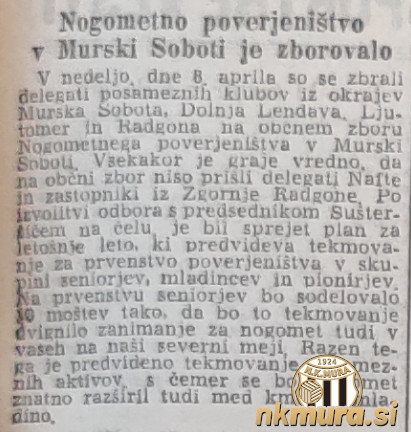 Čeprav ima nogomet v pokrajini ob Muri dolgo zgodovino, sta v začetnem obdobju vidne uspehe dosegala le dva kluba - Mura in Nafta. Po koncu druge svetovne vojne je začelo nastajati vse več nogometnih klubov. Izjema ni bilo niti Obmurje, kot so takrat imenovali današnje Pomurje. Posledično je NZS začela ustanavljati t.i. poverjeništva, ki so nekakšne predhodnice današnjih Medobčinskih nogometnih zvez. Poverjeništev oz. skupin je bilo sedem in vsaka od njih je skrbela za svojo lokalno ligo.