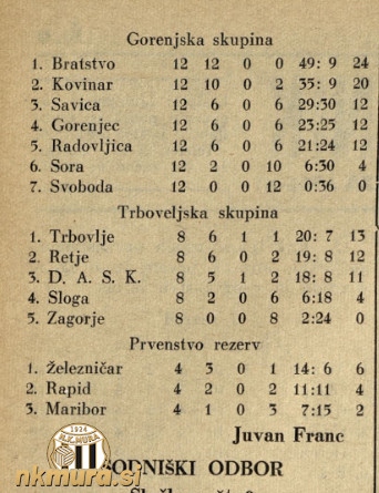 1. Građanski Čakovec 10 8 1 1 31:14 17 2. Mura 10 8 0 2 46:15 16 3. Lendava 10 6 1 3 29:23 13 4. Drava 10 3 0 7 16:47 6 5. Slavija Pobrežje 10 2 1 7 22:22 5 6. Ptuj 10 1 1 8 10:33 3