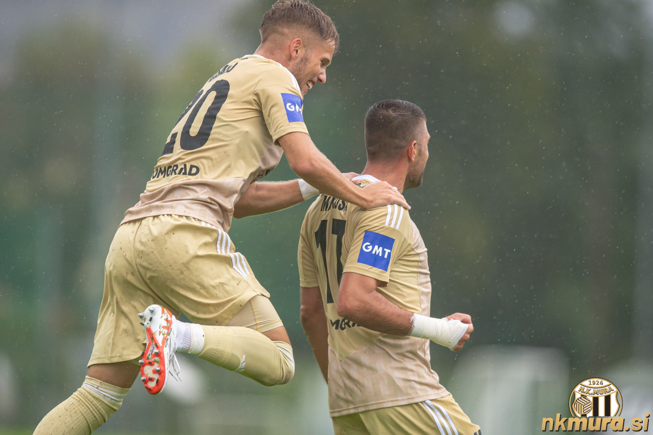 Niko Kasalo in Amadej Maroša po doseženem zadetku. Avtorske pravice: nkmura.si Foto: Loris Cipot/Fotolens