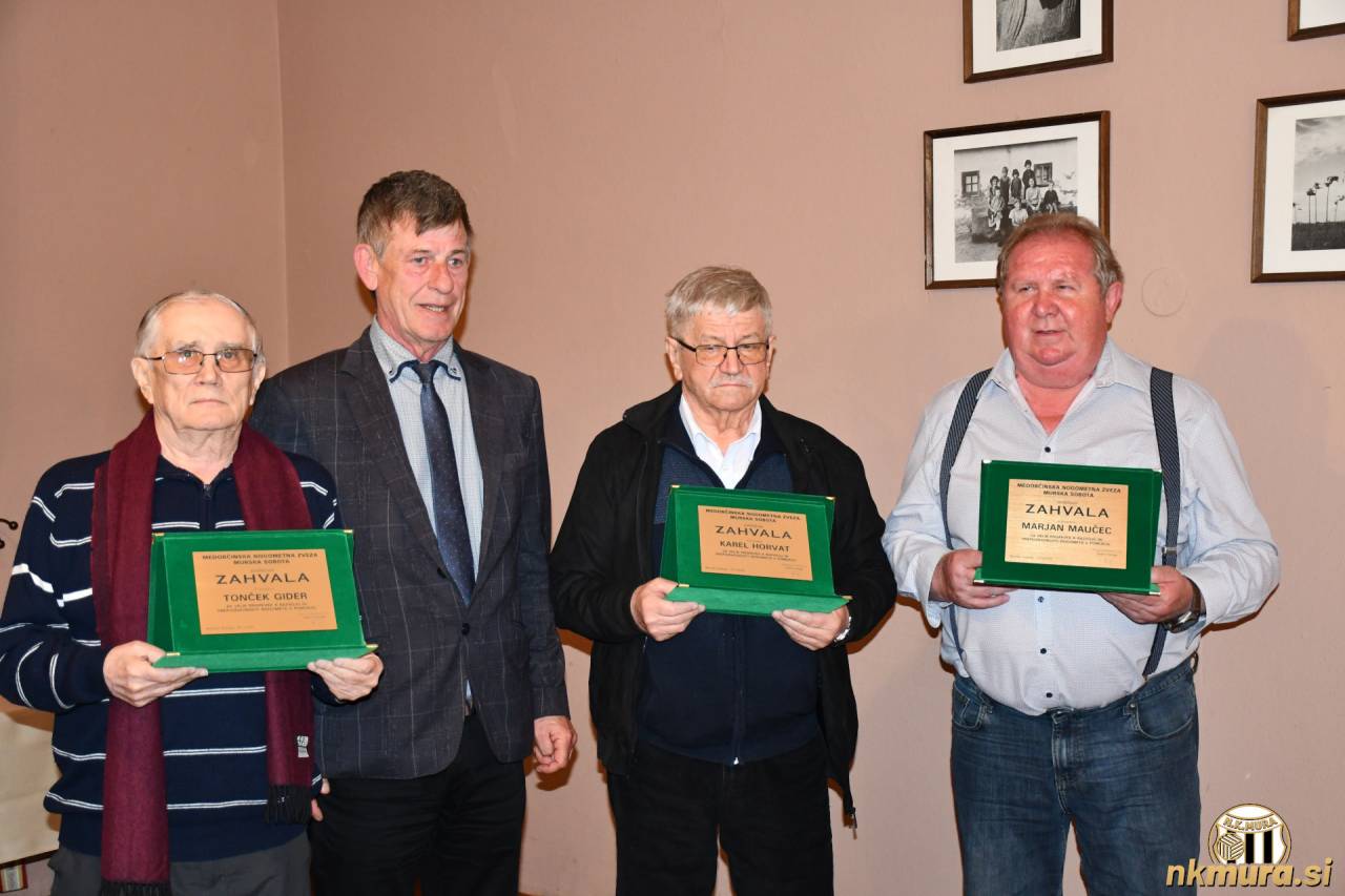 MNZ se je ob koncu skupščine z zahvalno listino spomnila treh, ki so - vsak na svojem področju - prispevali k ohranjanju nogometne identitete v pokrajini ob Muri. Zahvalo za velik prispevek k razvoju in prepoznavnosti nogometa v Pomurju so prejeli Karel Horvat, Marjan Maučec - Maki in Tonček Gider.