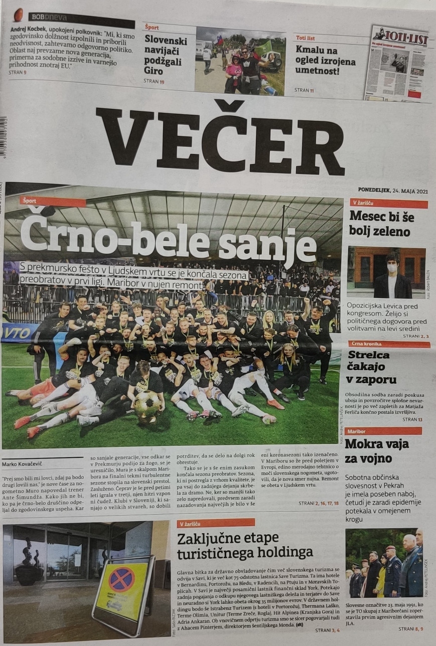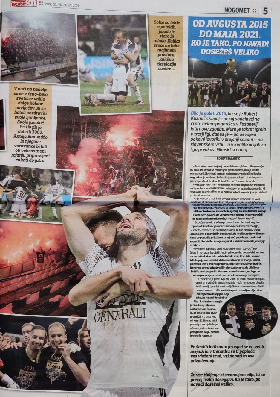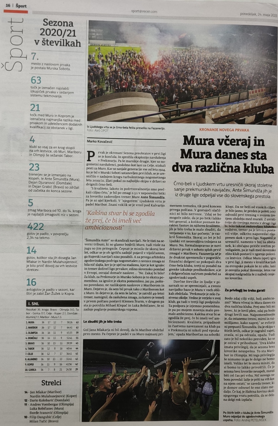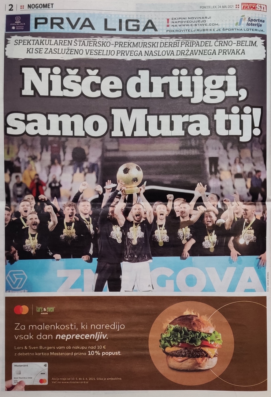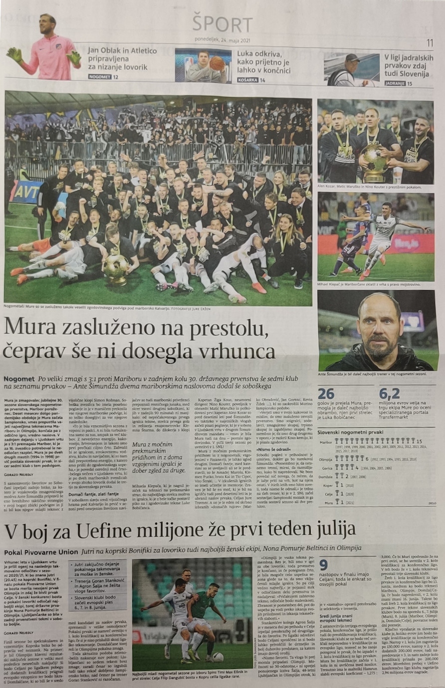V ponedeljek, 24. maja 2021, so mediji v Sloveniji polni novic o Murinem zgodovinskem naslovu državnih prvakov.