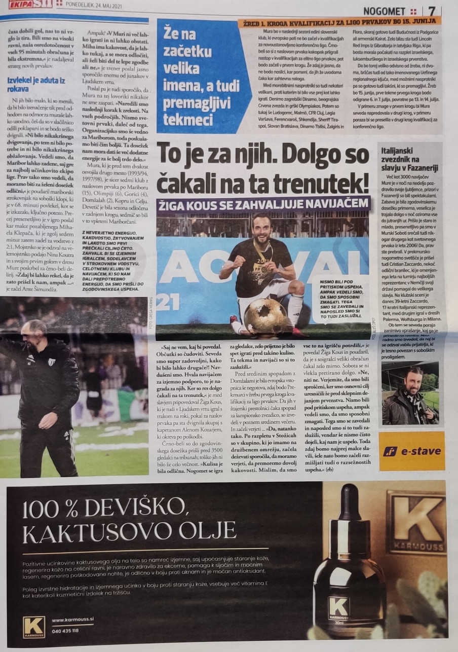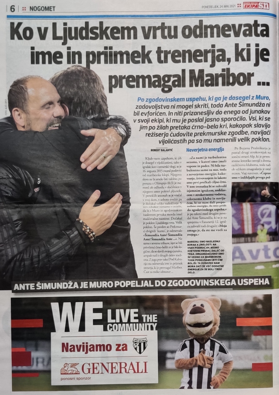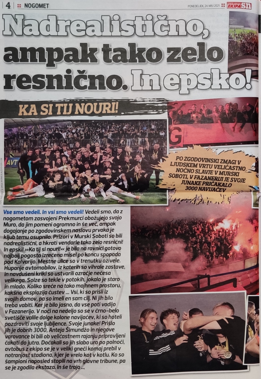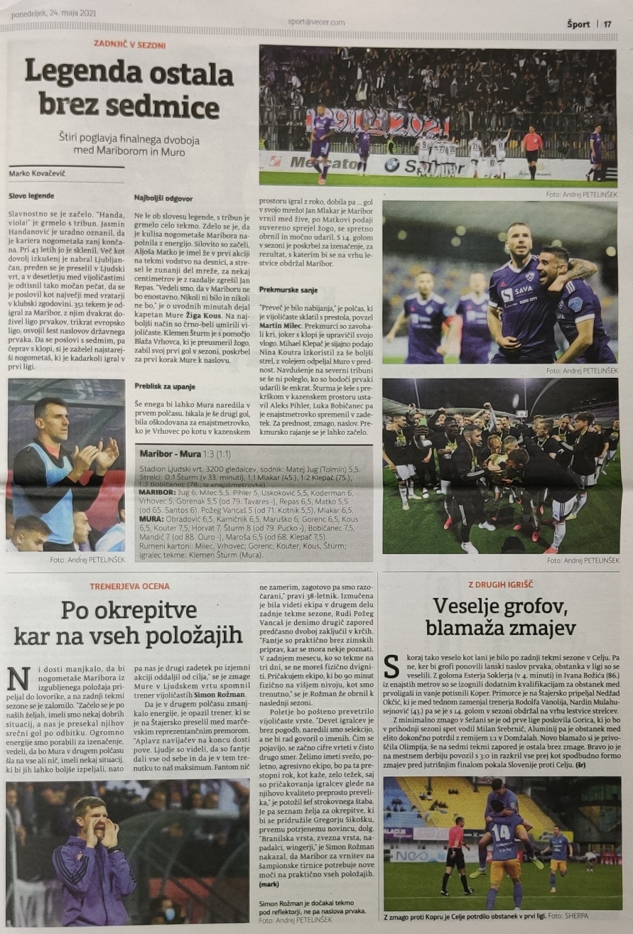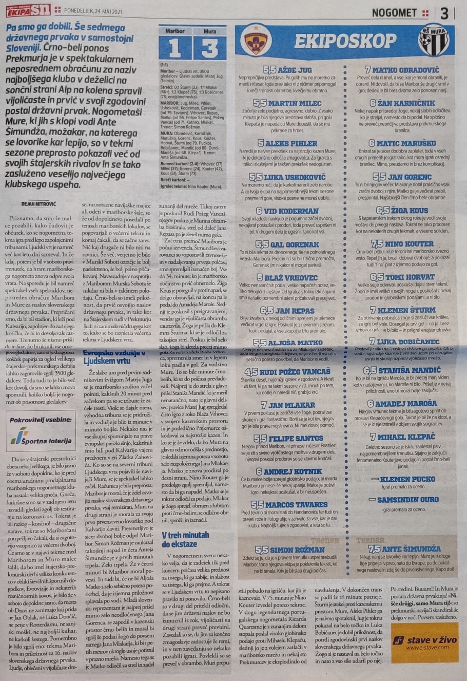 V ponedeljek, 24. maja 2021, so mediji v Sloveniji polni novic o Murinem zgodovinskem naslovu državnih prvakov.