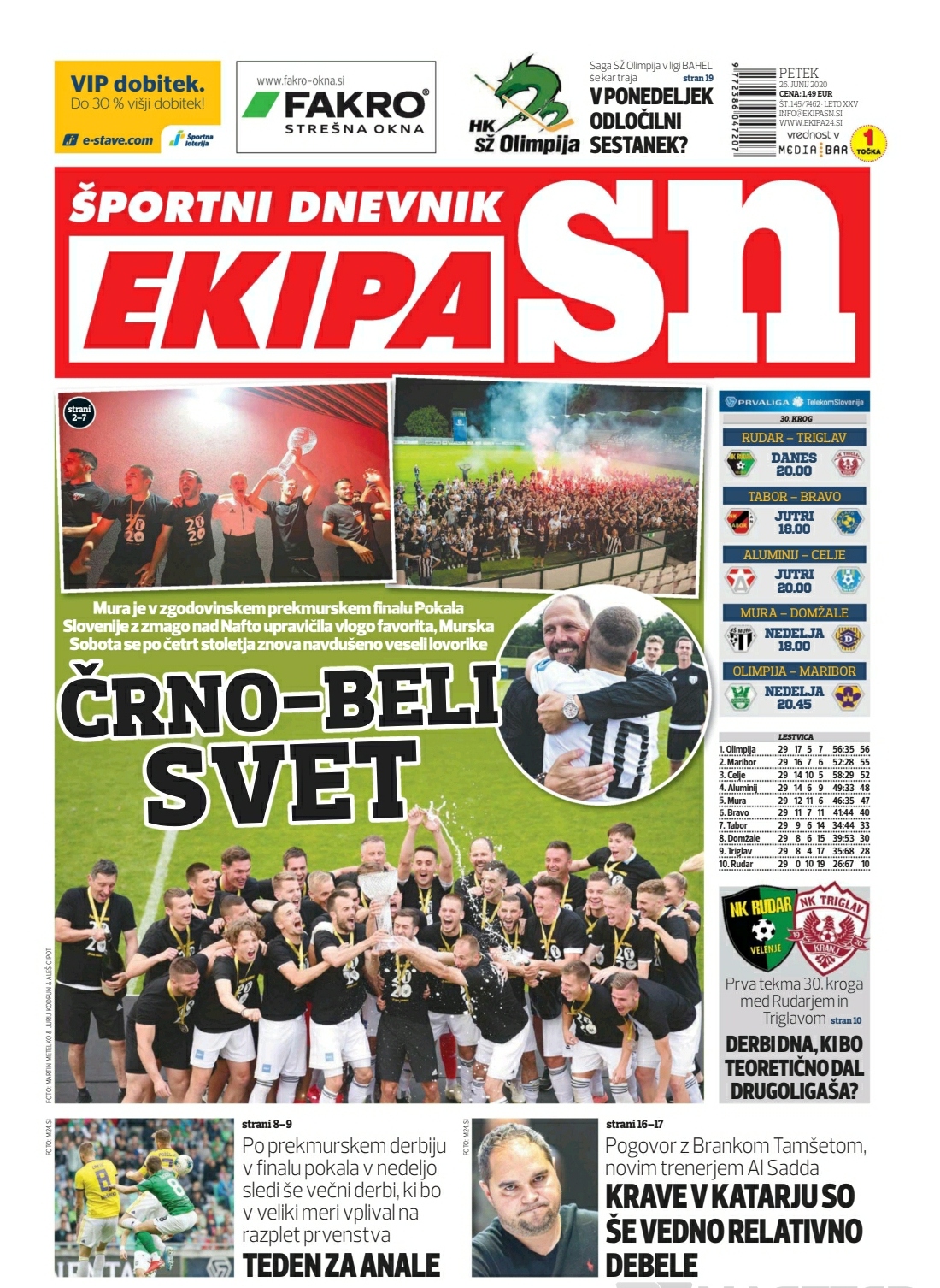 Naslovnica Ekipe 26. 6. 2020 Foto: EkipaSN