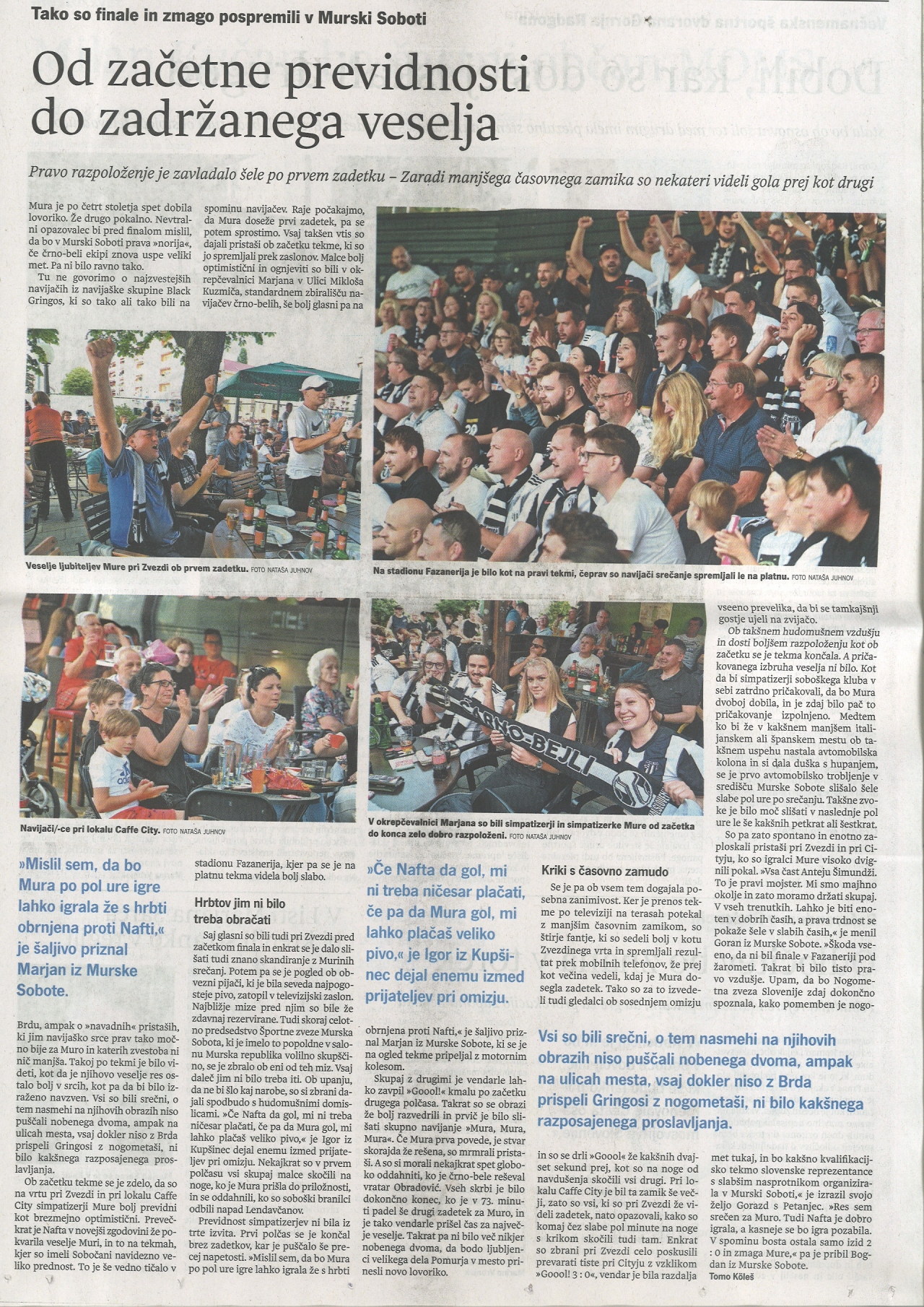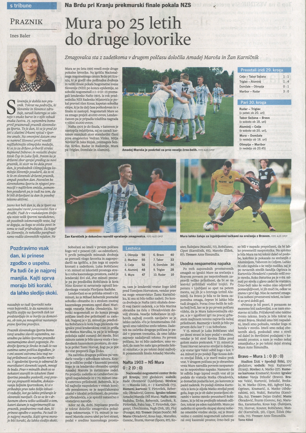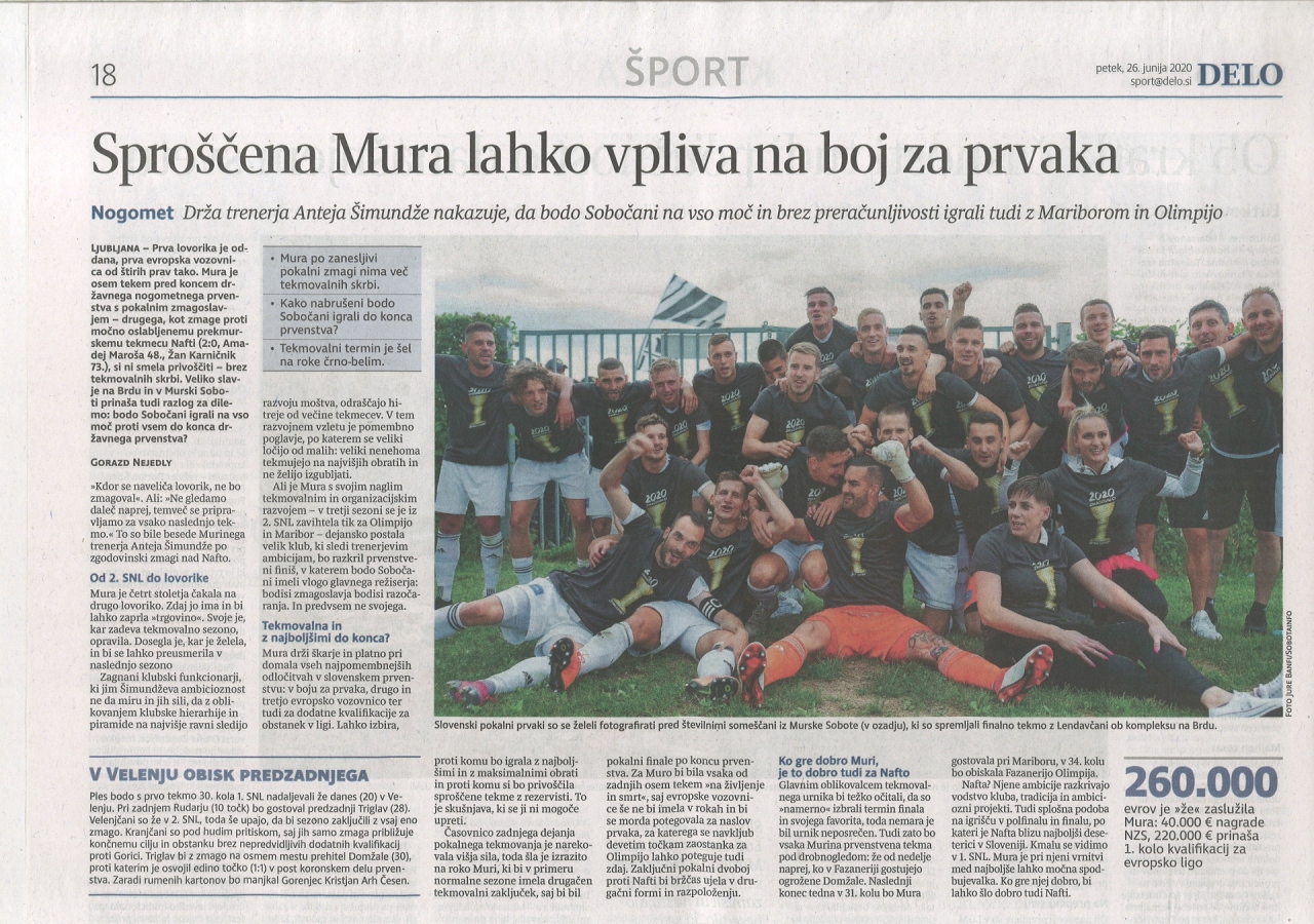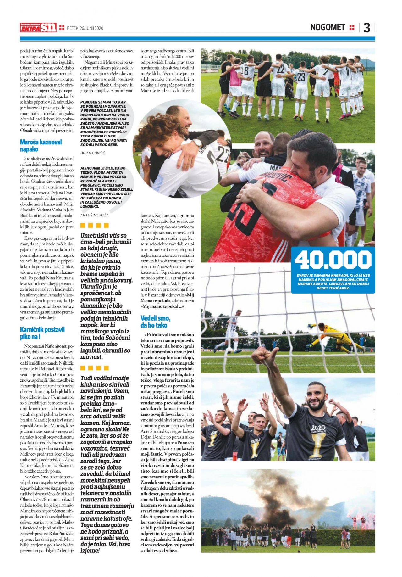 Zaradi četrtkovega praznika (25. junij je dan državnosti) so tiskani mediji o tekmi med Nafto in Muro obširno poročali v petek, 26. junija. EkipaSN je tekmi namenila sedem strani, Vestnik štiri, v Delu pa so zapisali Sproščena Mura lahko vpliva na boj za prvaka.