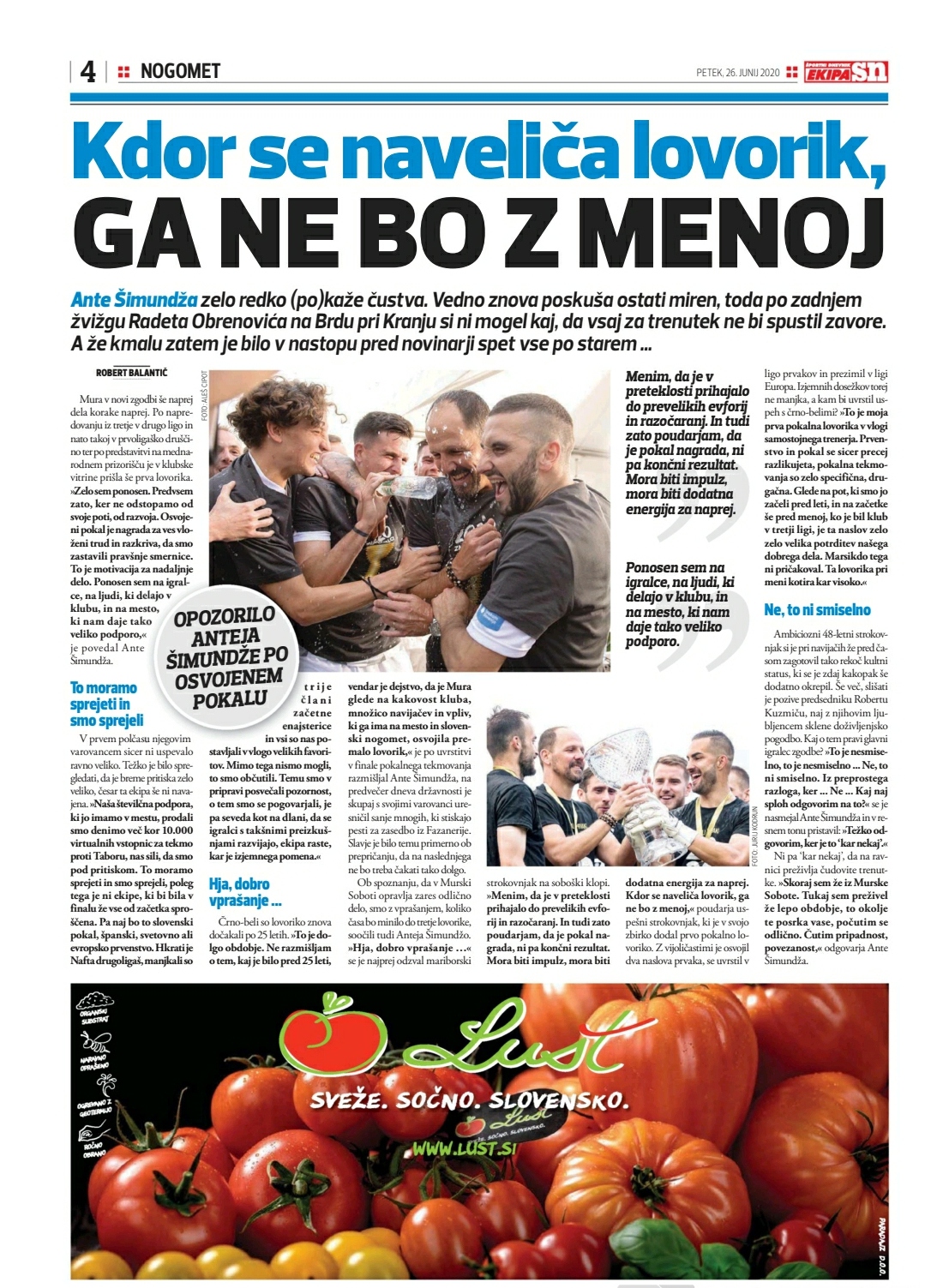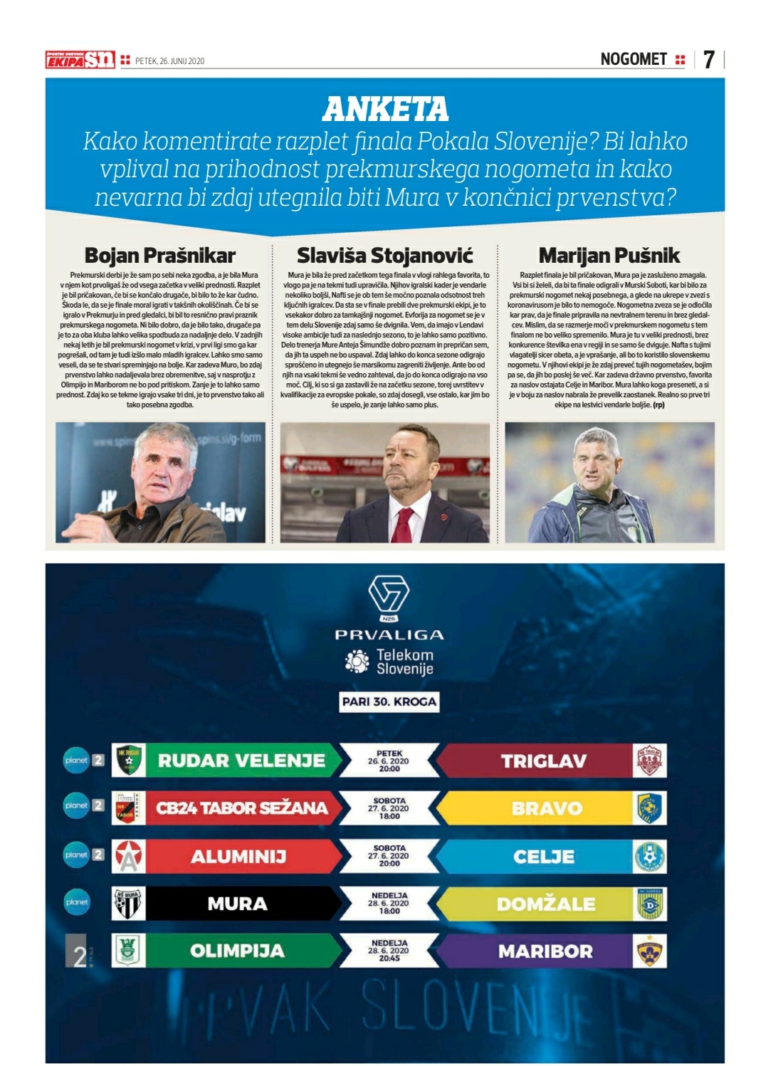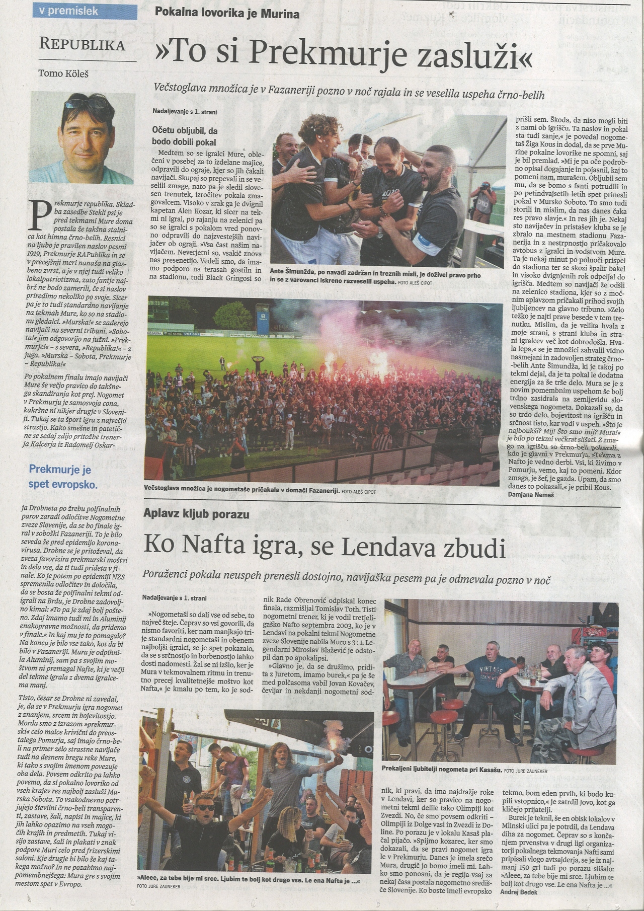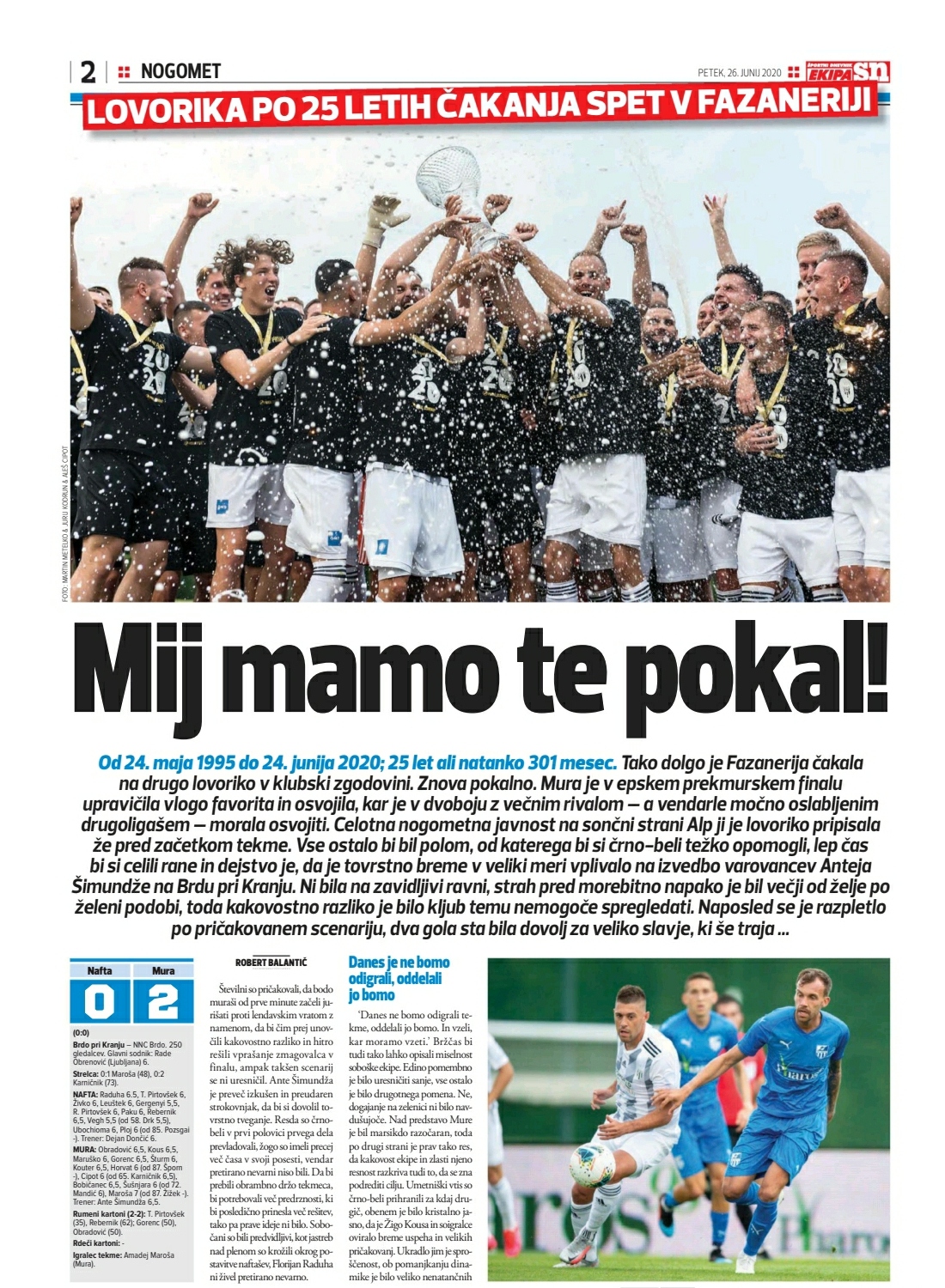 Zaradi četrtkovega praznika (25. junij je dan državnosti) so tiskani mediji o tekmi med Nafto in Muro obširno poročali v petek, 26. junija. EkipaSN je tekmi namenila sedem strani, Vestnik štiri, v Delu pa so zapisali Sproščena Mura lahko vpliva na boj za prvaka.