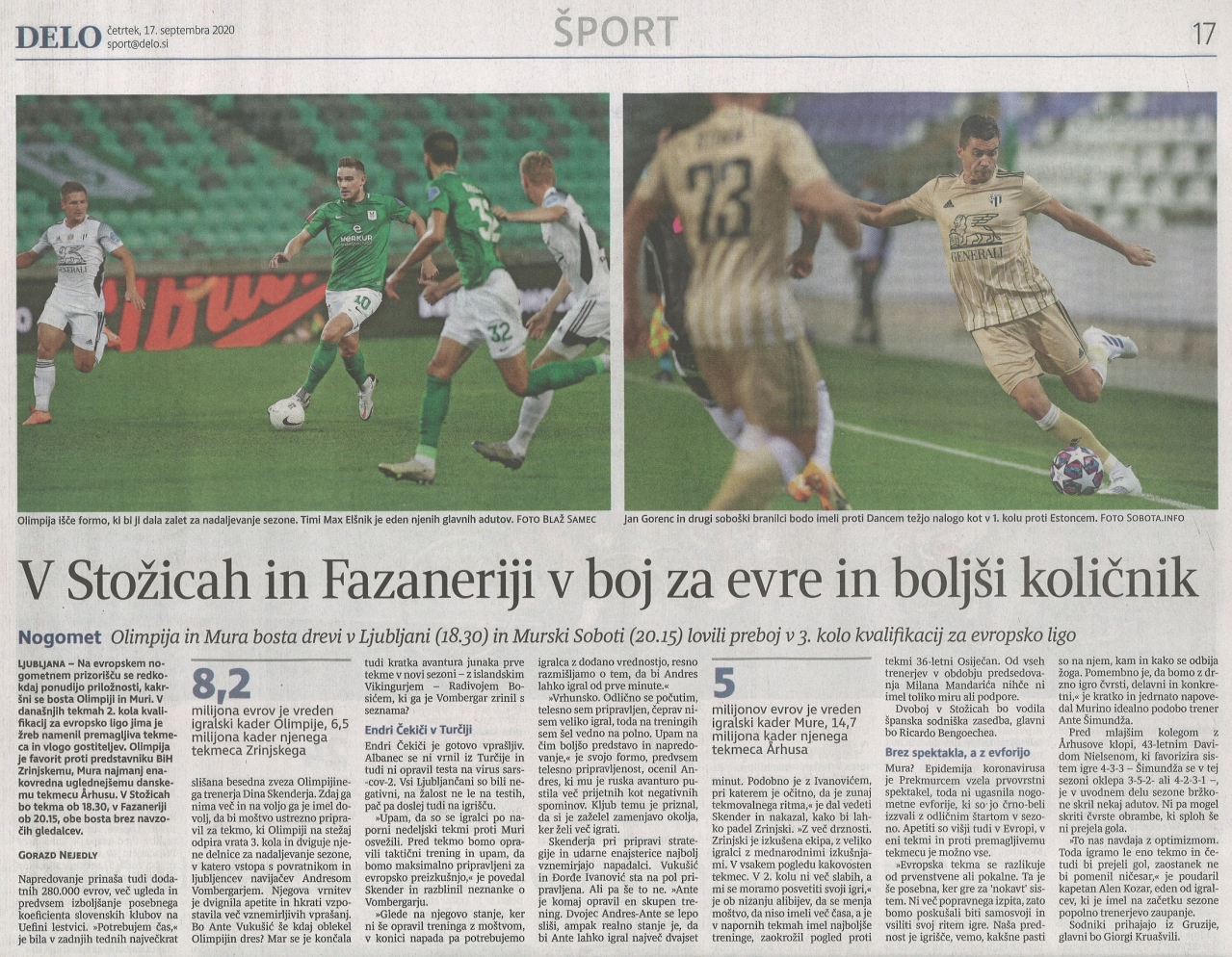V največjem slovenskem časniku Delu so zapisali: "V Stožicah in Fazaneriji v boj za evre in boljši količnik". Danes namreč poleg Mure igra tudi ljubljanska Olimpija.