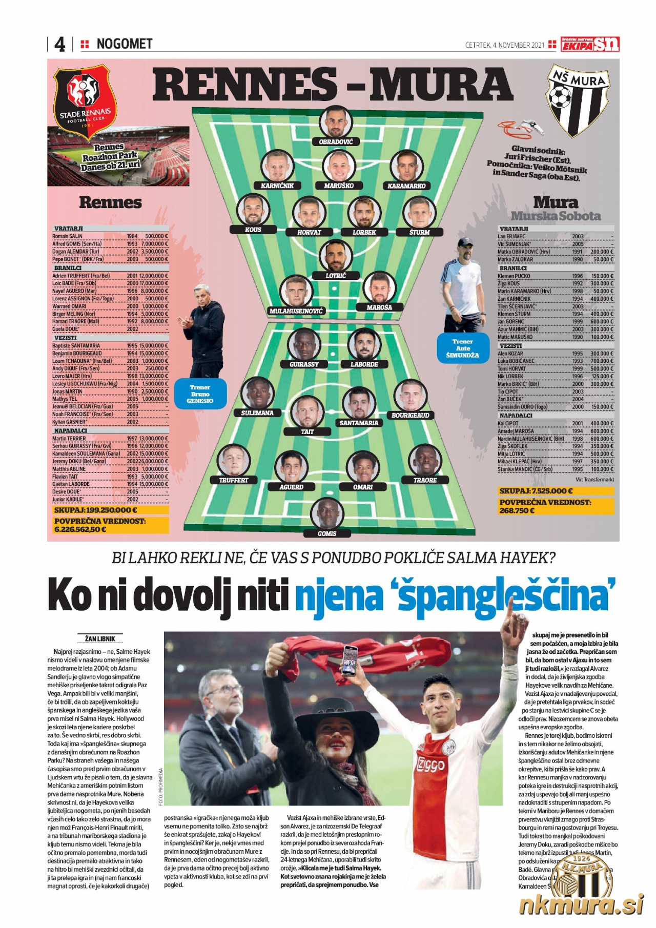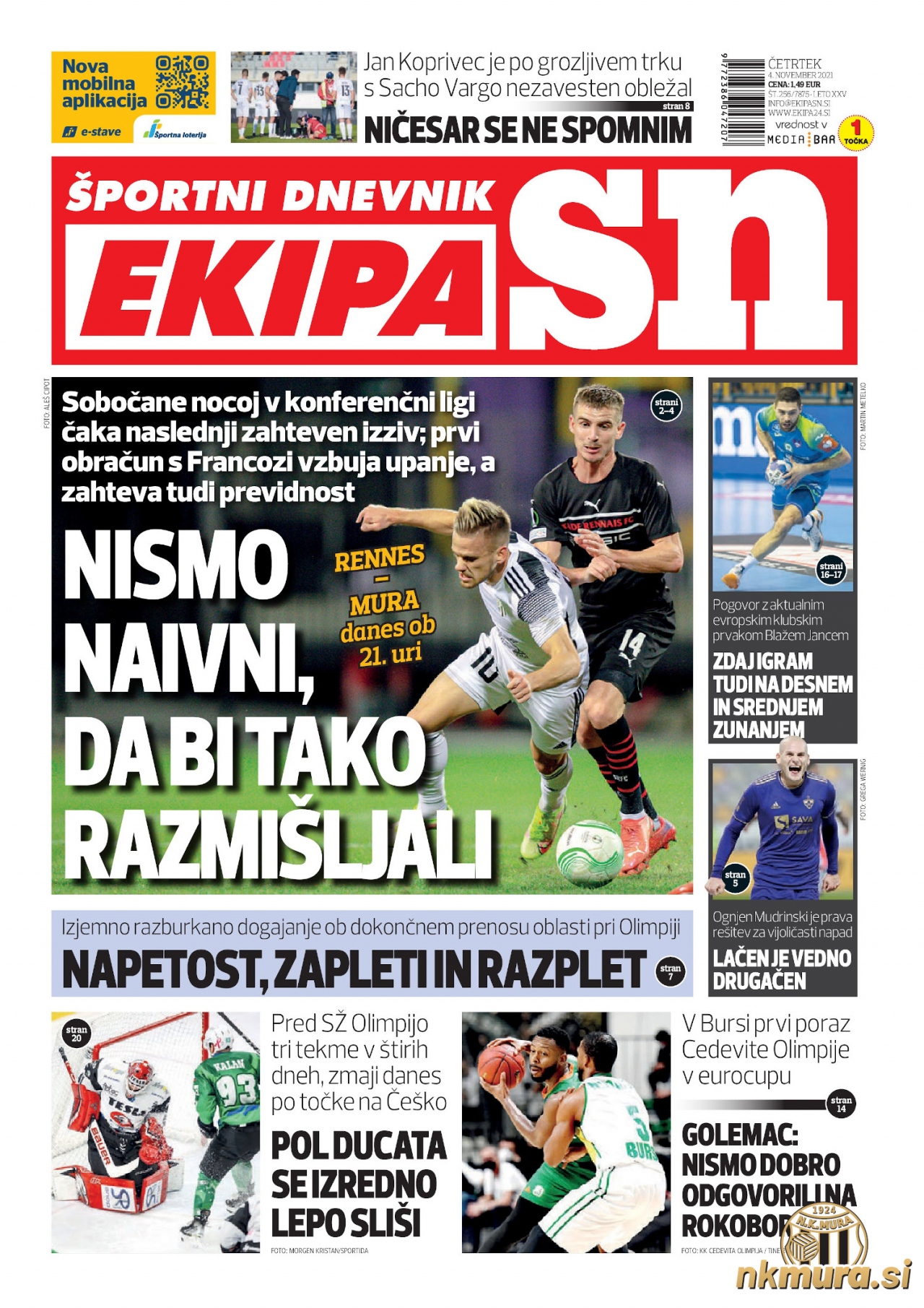 Pred današnjim dvobojem Rennesa in Mure smo prelistali ttri osrednje športne medije L'Equipe, EkipoSN in Delo.