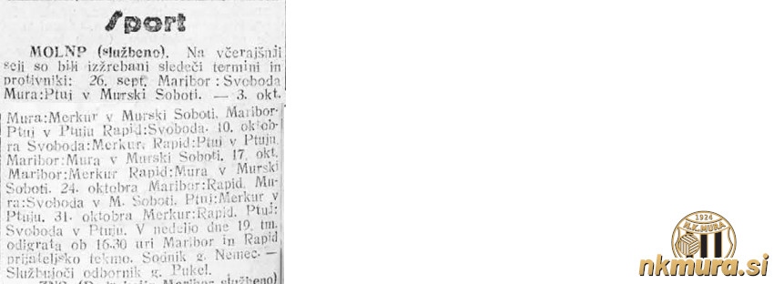 Da v slovenskem nogometu vladajo nejasnosti priča dejstvo, da sta pare mariborskega okrožja izžrebala LNP in tudi MOLNP. Spomnimo, da je LNP 27. avgusta sporočila, da je izžrebala pare za sezono 1926/1927, ker tega ni storil mariborski odbor. Zdaj se je mariborski odbor vendarle zganil in to tudi storil. Žreb je določil, da bo Mura vse tekme v jesenskem delu igrala na domačem igrišču.