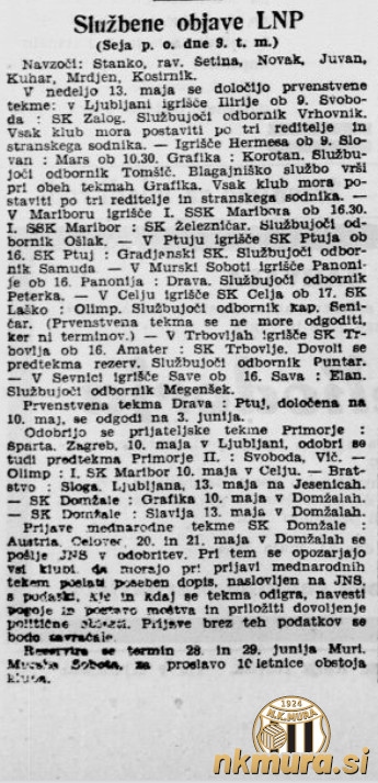 Sport klub Mura letos praznuje deseto obletnico obstoja. V ta namen bo klub pripravil številne prireditve, ki bodo na sporedu 28. in 29. junija 1934.