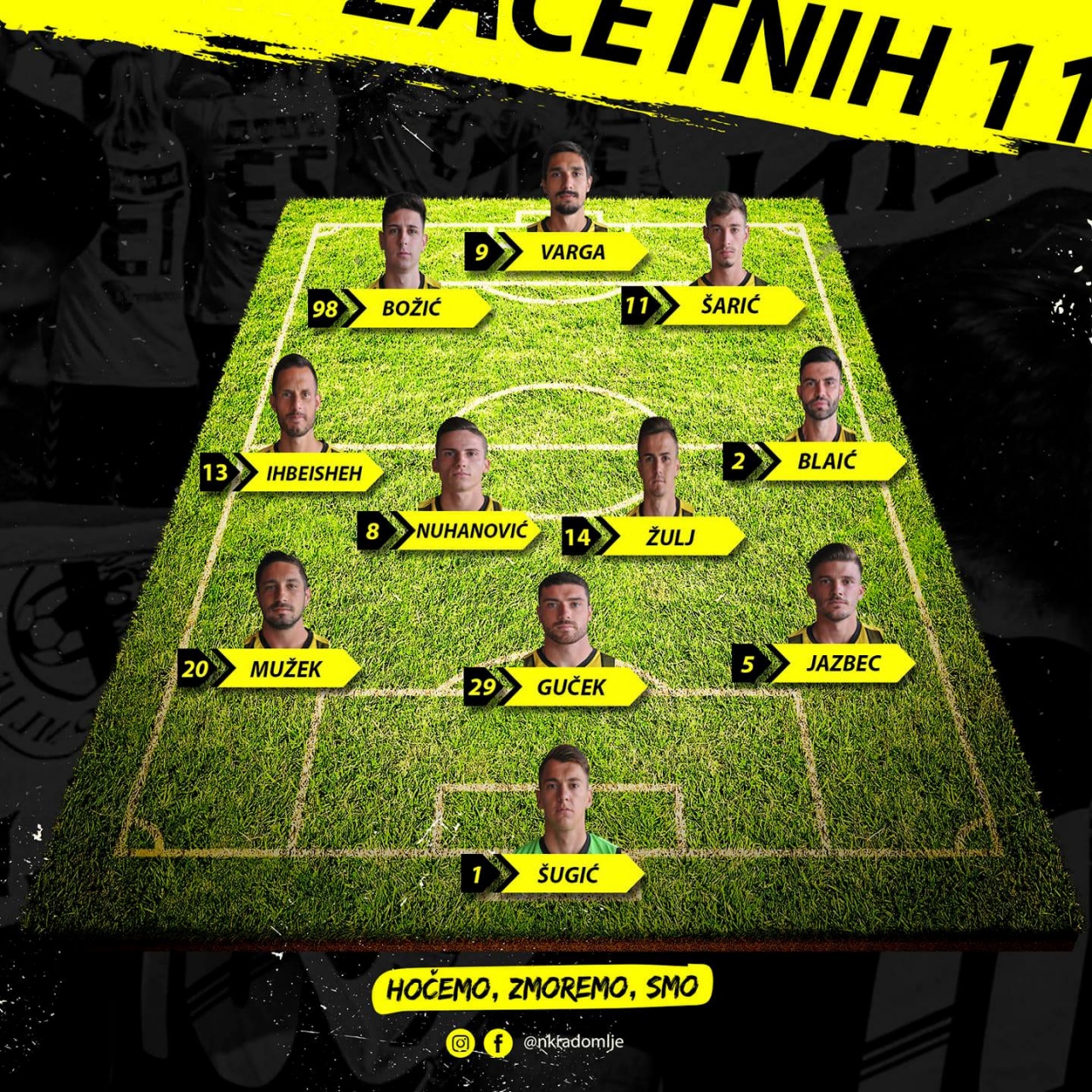 Postava Radomelj: Šugić, Mužek, Guček, Jazbec, Ihbeisheh, Nuhanović, Žulj, Blaić, Božić, Šarić, Varga. Klop: Marjanović, Petek, Primc, Kregar, Nikolić, Štorman, Zulić in Fortuna. Trener: Rok Hanžič.