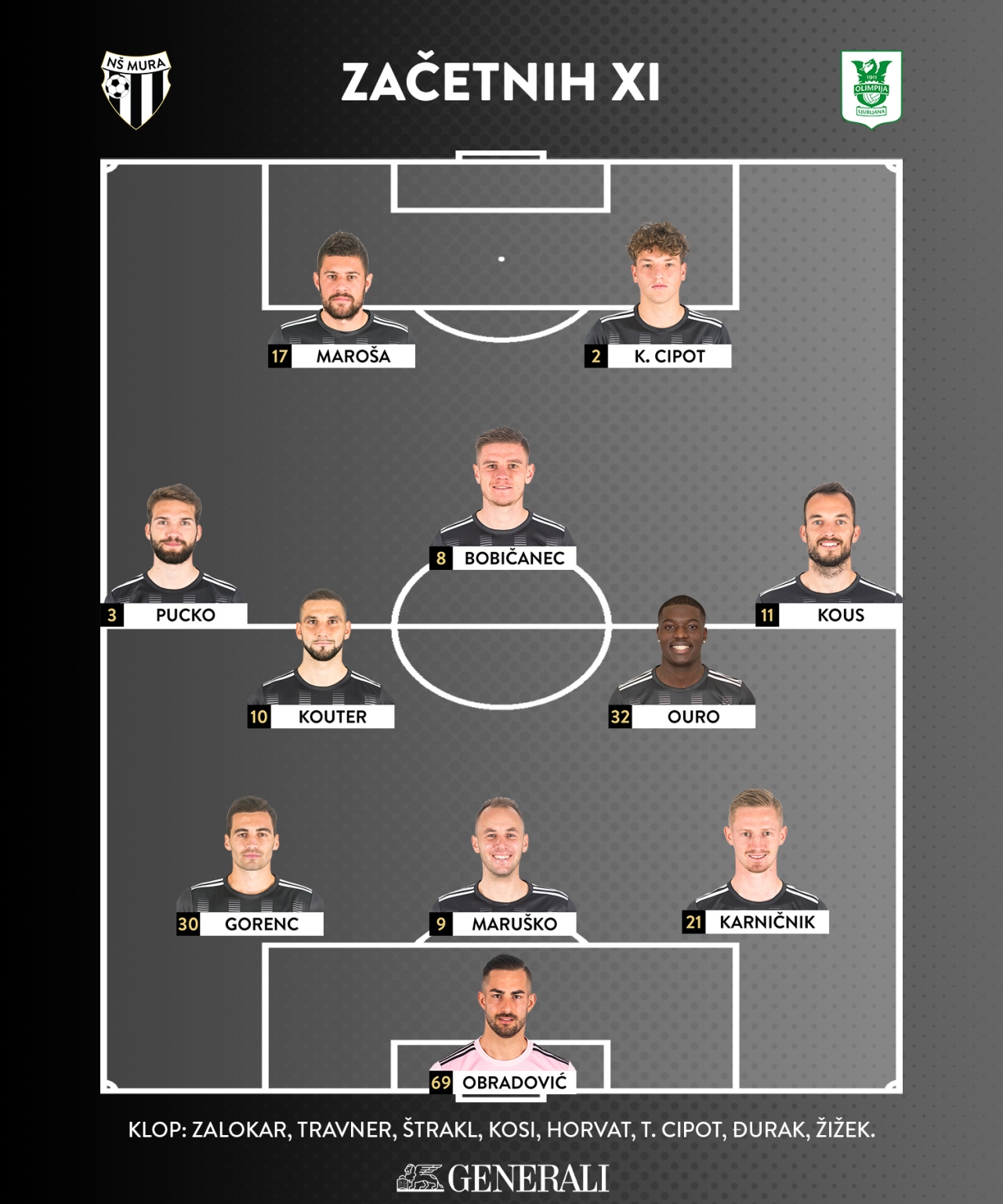 Postava Mure: Obradović - Gorenc, Maruško, Karničnik - Pucko, Kouter (od 83. Horvat), Bobičanec (od 85. Đurak), Ouro, Kous - Maroša (od 88. Žižek), K. Cipot (od 88. Štrakl).