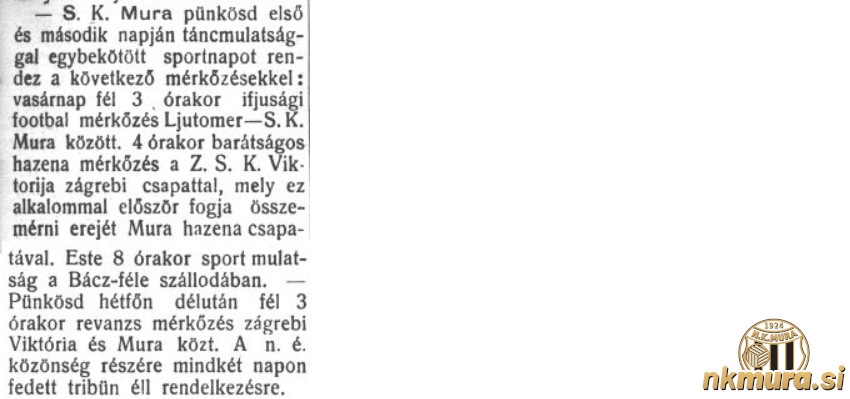 Mura pripravlja športne prireditve ob binkoštih. Avtorske pravice: nkmura.si Foto: Mörszka krajina, 23. maj 1926