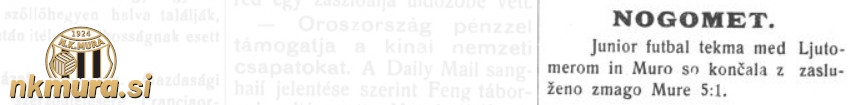 Športni klub Mura je že drugič zapored pripravil športne prireditve in plesni večer na binkoštno nedeljo in ponedeljek. V nedeljo 23. maja 1926 ob 14.30 je bila prijateljska tekma med mladinsko nogometno ekipo Mure in Ljutomera. Mura je to tekmo zmagala s 5:1.