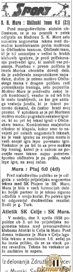 Nogometaši Mure so se pred maloštevilno publiko v prijateljski nogometni tekmi pomerili s Ptujem in zmagali s 6:0. Ob polčasu je bilo 4:0.