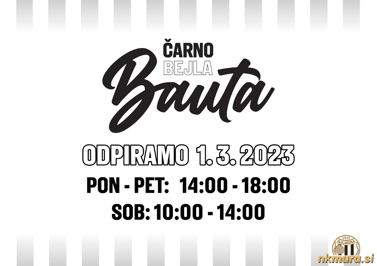 Mura je danes uradno odprla nov dnevni bar in čarno-bejlo bauto z Murini artikli. Nahajata se pod južno tribuno stadiona Fazanerija. Kot smo izvedeli bo šank pod južno tribuno ostal in bo ostal odprt v času domačih tekem. Trgovina bo odprta od ponedeljka do petka od 14.00 do 18.00 in v soboto od 10.00 do 14.00.