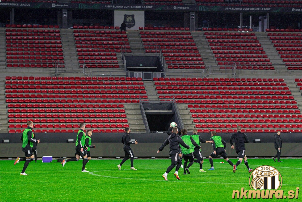 Nogometaši Mure so danes ob 20.uri v deževnem Rennesu opravili enourni uradni trening pred jutrišnjo tekmo 4. kroga Evropske konferenčne lige. Preizkusili so zelenico Roazhon Parka, kjer domuje trenutno petouvrščena ekipa francoske prve lige Ligue1.