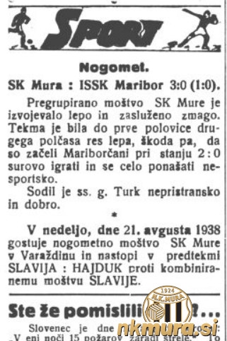 Nogometaši Mure so v Murski Soboti na prijateljski tekmi gostili I.SSK Maribor in ga premagali s 3:0 (1:0). Mariborčani so se po vodstvu Mure z 2:0 začeli obnašati precej nešportno in se posluževali grobe igre.