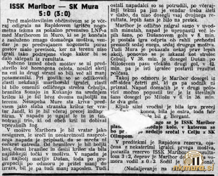 Na igrišču Rapida je bila v četrtek, 29. junija 1939, odigrana tekma 3. kroga pokala LNP za sezono 1938/1939 med I.SSK Mariborom in Muro. Tekmo so dobili domačini s kar 5:0 (3:0) in se tako uvrstili v nadaljnje tekmovanje, kjer jih čaka celjski Olimp.