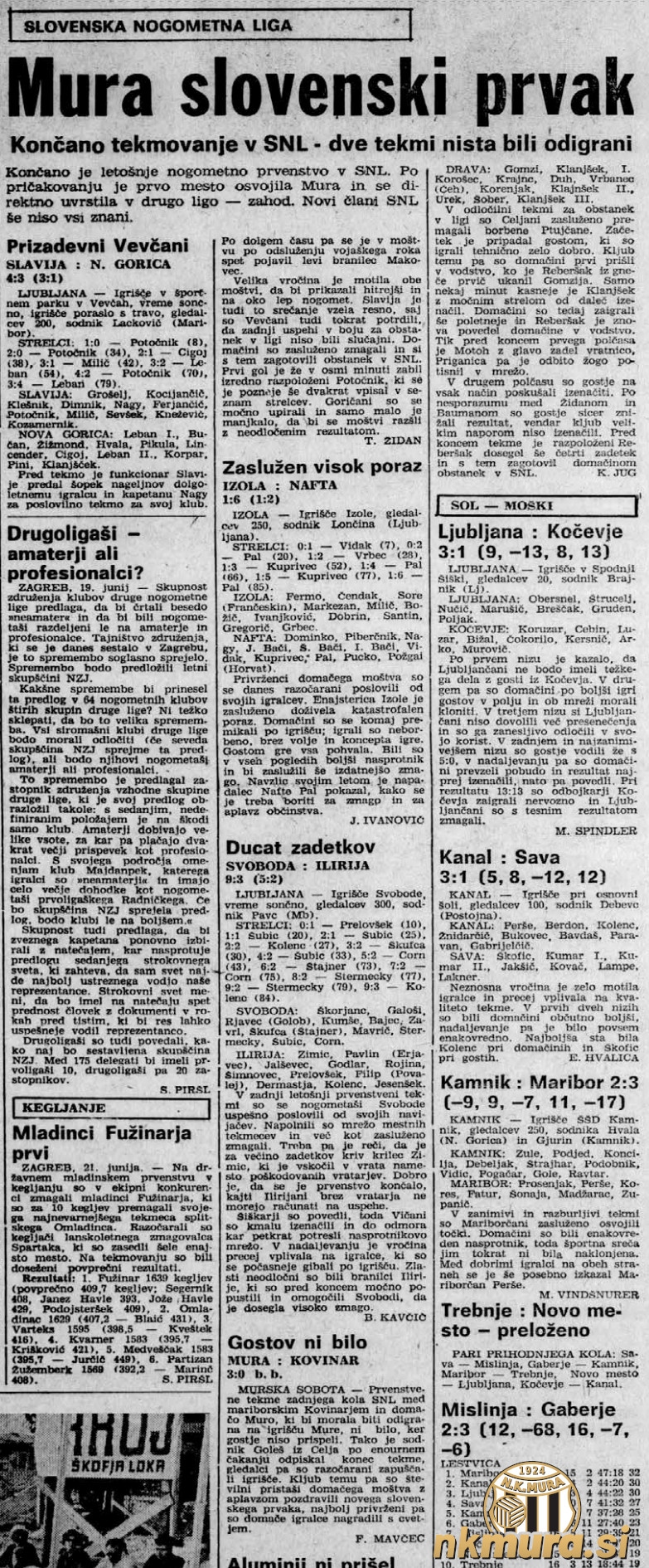 S prijetnimi spomini se te izjemne sezone spomni Jože Horvat Didi, ki je izpostavil ključno tekmo sezone, ki jo je Mura odigrala kolo pred koncem, ko je gostovala pri drugouvrščenem Aluminiju in ga premagala z 2:3. Za Muro je en zadetek dosegel Kranjc, dva pa Kovač.