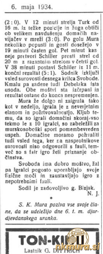 S.K. Mura poziva vse svoje člane, da se 6. maja 1934 udeležijo Jurjevega.