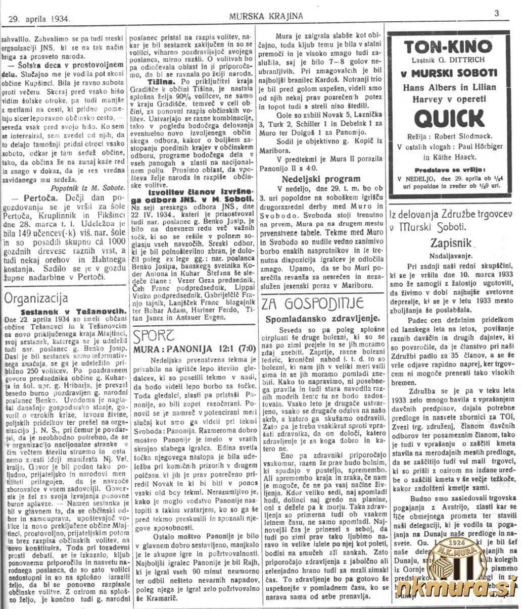 Čeprav je Mura igrala slabše kot običajno, je bila kljub temu celo tekmo v premoči. Pri Muri je bil najboljši branilec Ivo Kardoš, zelo uspešen pa je bil tudi notranji trio. Nogometaši Mure so prikazali kar nekaj lepih potez in strelov proti vratom ne preveč zanesljivega vratarja Panonije. V časnikih so kot enega največjih krivcev za poraz označili ravno vratarja Panonije.