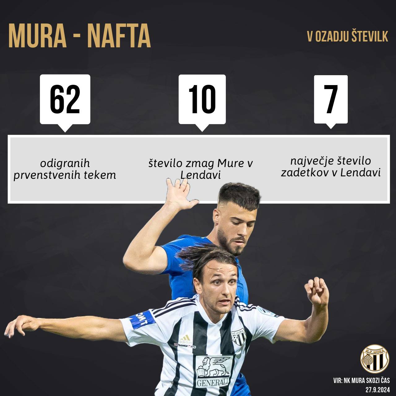 Nekaj statističnih podatkov tekem med Muro in Nafto pred 63. prekmurskim derbijem. Avtorske pravice: nkmura.si Foto: NK Mura skozi čas