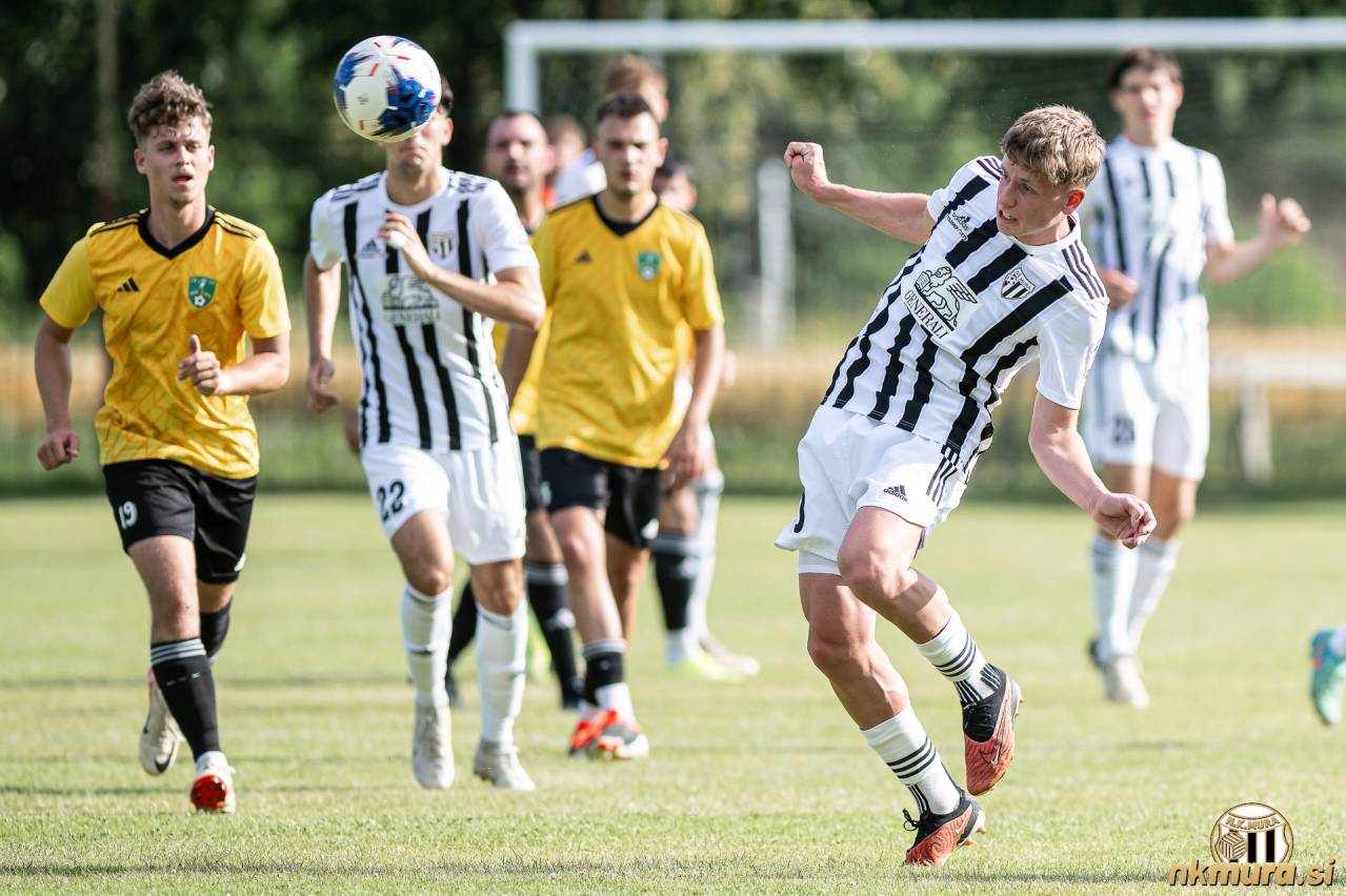 Igralci Mure so v prvem polčasu dosegli devet zadetkov in zmagali z 0:9. V drugem so se domačini pomerili z mladinci Beltinec.