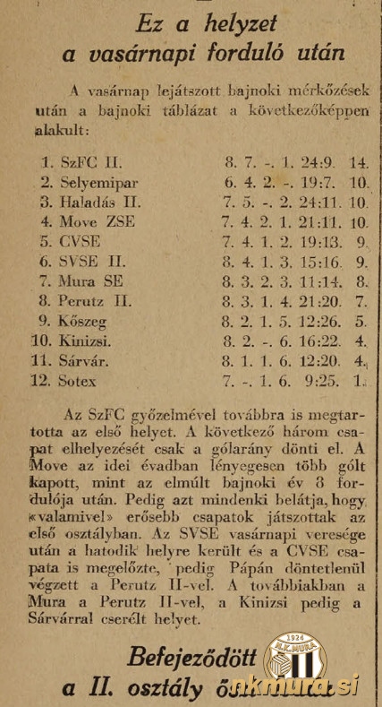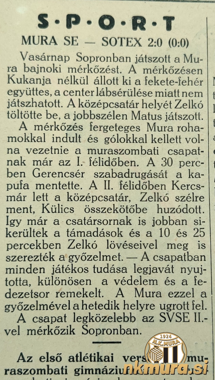 Mura je v nedeljo gostovala v Sopronu in igrala ligaško tekmo proti proti ekipi Soproni Sotex, oz. krajše SoSE in zmagala z 0:2. Ob polčasu gledalci niso videli zadetkov.