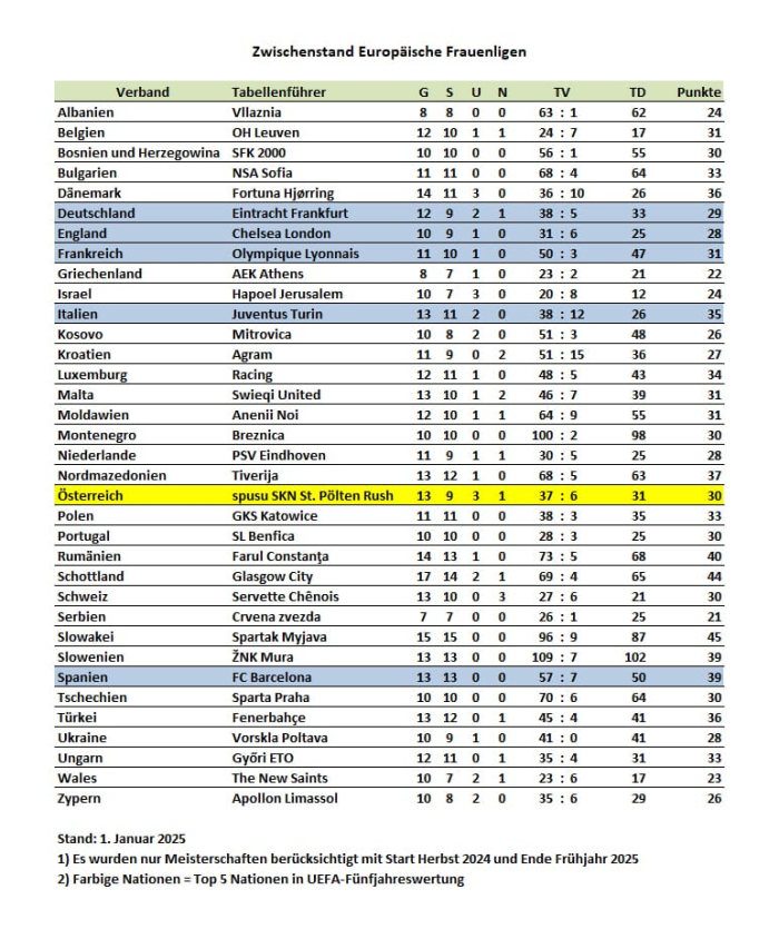 Murašice, ki so jesenski del sezone sklenile na prvem mestu in pri tem zmagale vse tekme, so po številu doseženih zadetkov daleč najuspešnejši ženski kolektiv v Evropi. Naše nogometašice so dosegle neverjetnih 109 zadetkov, prejele pa le 7 in imajo najboljšo gol razliko +102. Podrobnejša statistika je prikazana v spodnji tabeli.