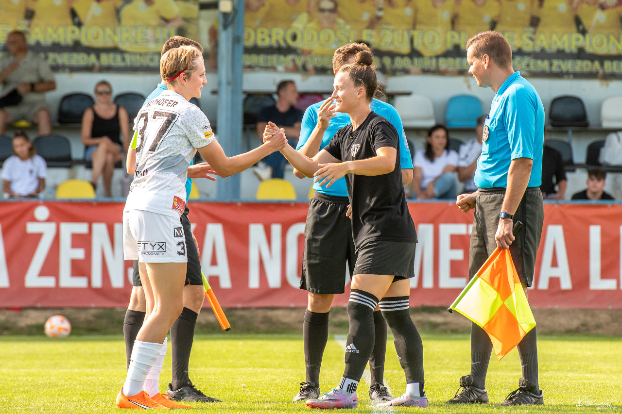 Črno bele so tekmo začele v postavi: Iva Kocijan, Nikolina Plavšić, Lucija Kos, Špela Rozmarič, Evelina Kos, Thalita Ellen Silva Bomfim, Lea Dolinar, Lara Klopčič, Noelle Vilčnik, Josilene De Jesus Matos in Špela Kolbl. V nadaljevanju so priložnost dobile še: Daša Dolenšek, Neža Hrga, Ines Sok, Živa Rakovec, Neli Hofman. Igrale so pod taktirko trenerja Bojana Jančarja. Danes je zaradi poškodbe manjkala Sara Adam.