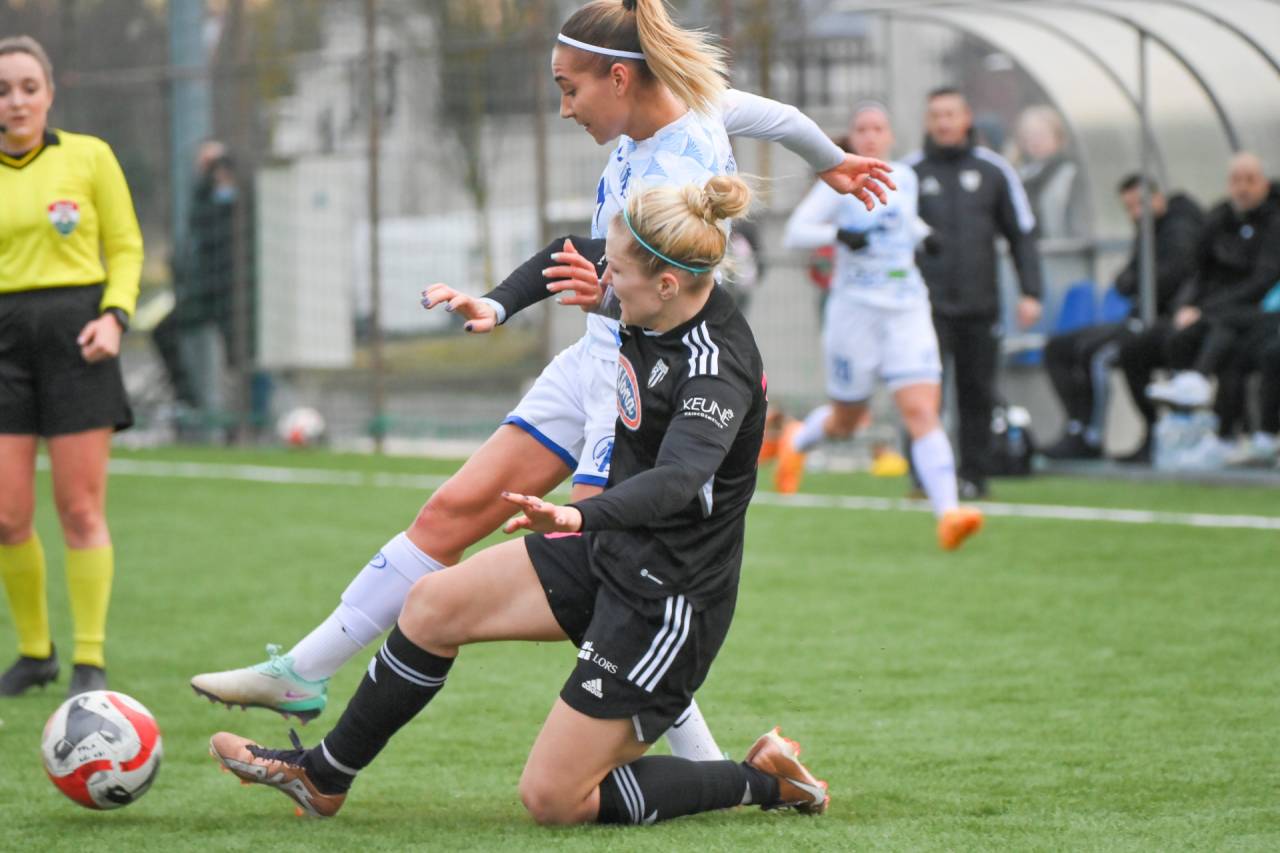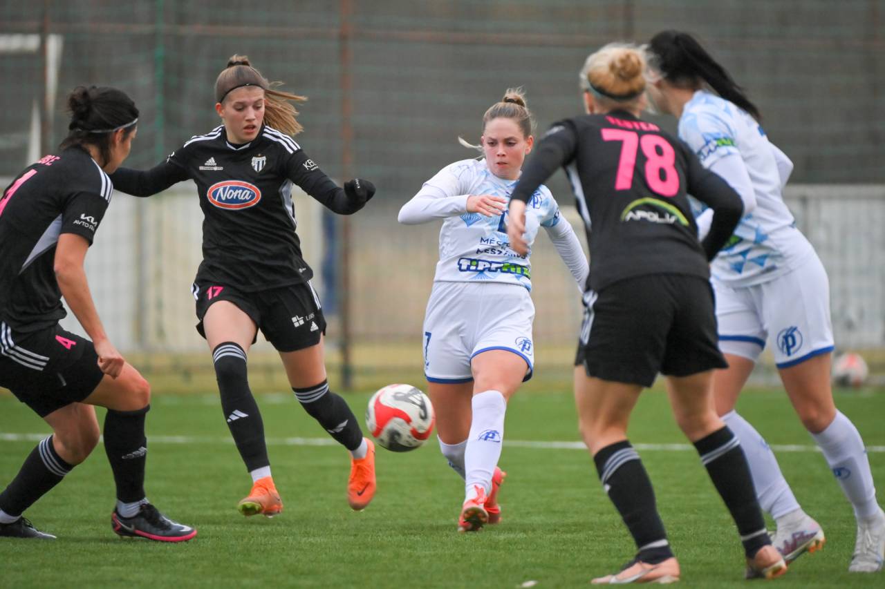 Živa Rakovec skuša zaustaviti igralko Puskas Akademie. Avtorske pravice: nkmura.si Foto: puskasakademia.hu
