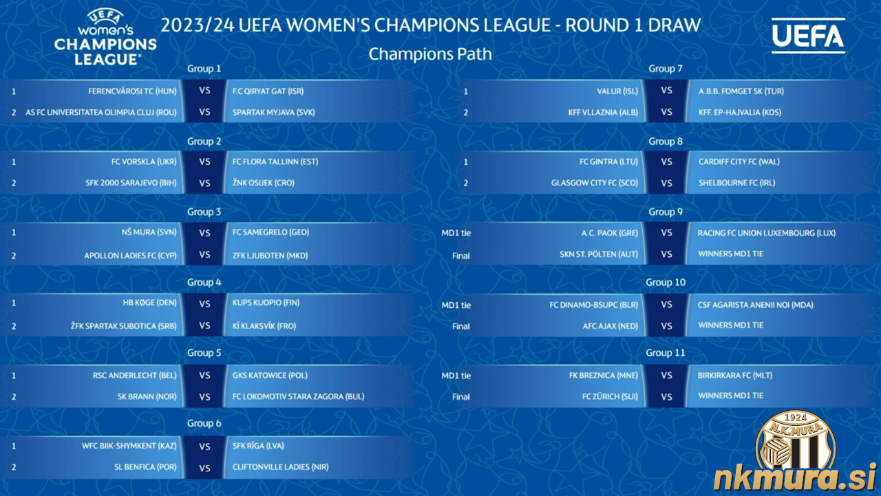 "Črno-bele" se bodo v polfinalu skupine 3 kvalifikacij pomerile z gruzijsko ekipo FC Samegrelo. Če murašice preskočijo prvo oviro, jih v finalu čakajo zmagovalke dvoboja med ciprsko ekipo Apollon Ladies FC in makedonsko ekipo ZFK Ljuboten. Desetkratne slovenske prvakinje so bile pred žrebom uvrščene v skupino nosilk.