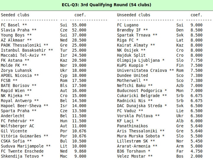 V ponedeljek, 18. julija ob 14.00, bo v Nyonu žreb parov 3. kroga evropske konferenčne lige. UEFA je objavila skrčen seznam možnih nasprotnikov Mure. Če črno-beli v dveh tekmah premagajo irski Saint Patrick's Athletic, jih čakajo zmagovalci spodnjih dvobojev.