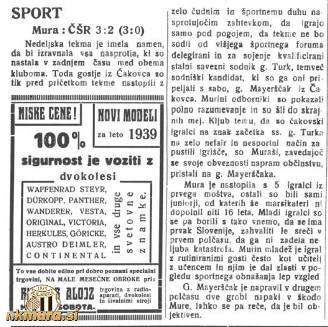V prijateljski nogometni tekmi so se nogometaši Mure pomerili s Čakovečkim ŠK in zmagali s 3:2. Ob polčasu je bilo 3:0 za Muro.