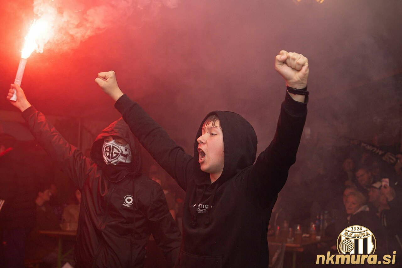Mirlind Daku (v sredini) z navijači. Avtorske pravice: nkmura.si Foto: Aleš Cipot/fotolens.si