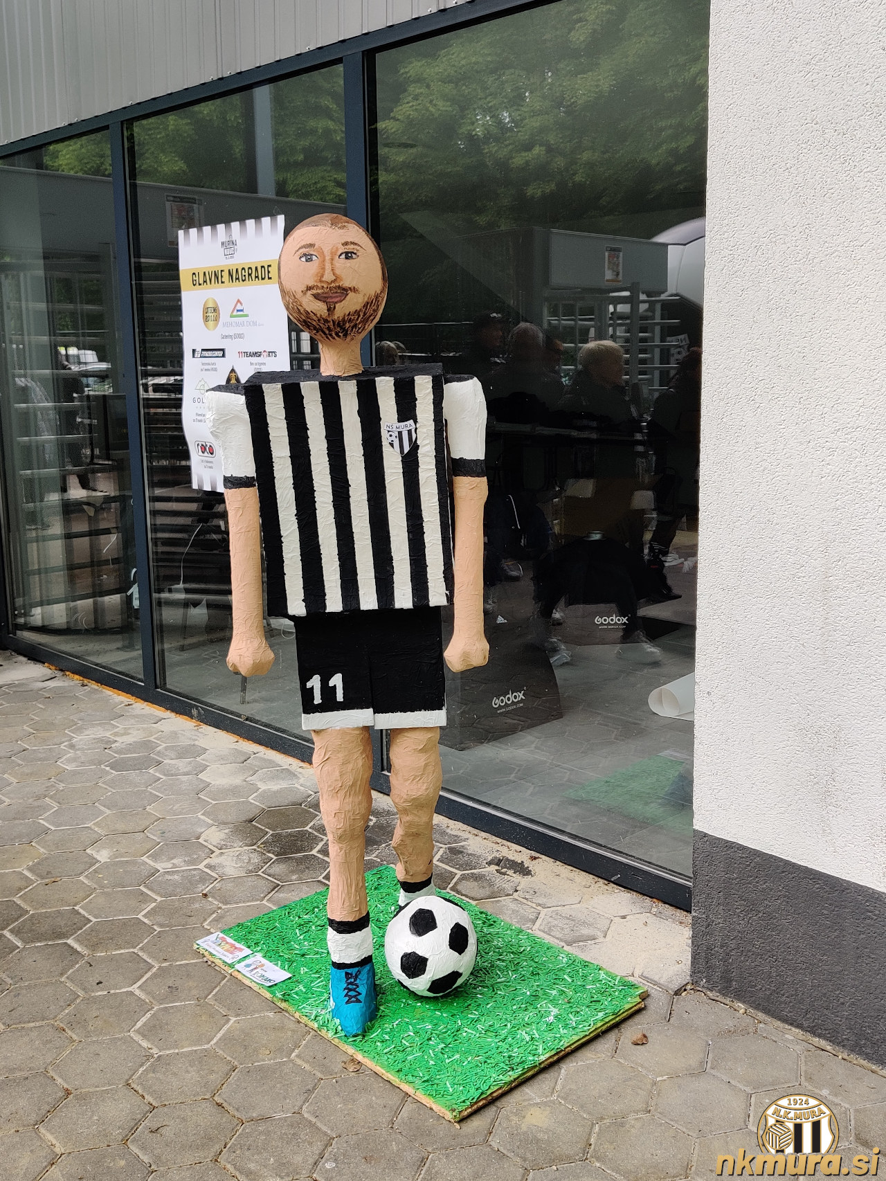 Pred glavnim vhodom na stadion je bila skulptura Žige Kousa, ki so jo izdelali v vrtcu Romano na Pušči. Avtorske pravice: nkmura.si Foto: Simon Horvat