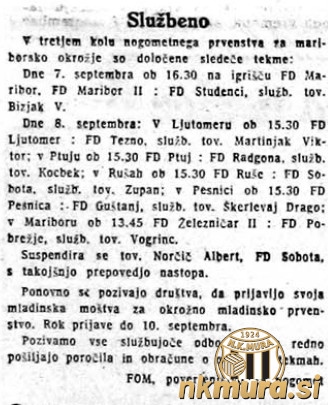 Fizkuluturni odbor Maribor (FOM) je po tekmah 2. kroga sporočil, da je do nadaljnjega suspendiral igralca Sobote Alberta Norčiča. Razlog zaenkrat ni znan.