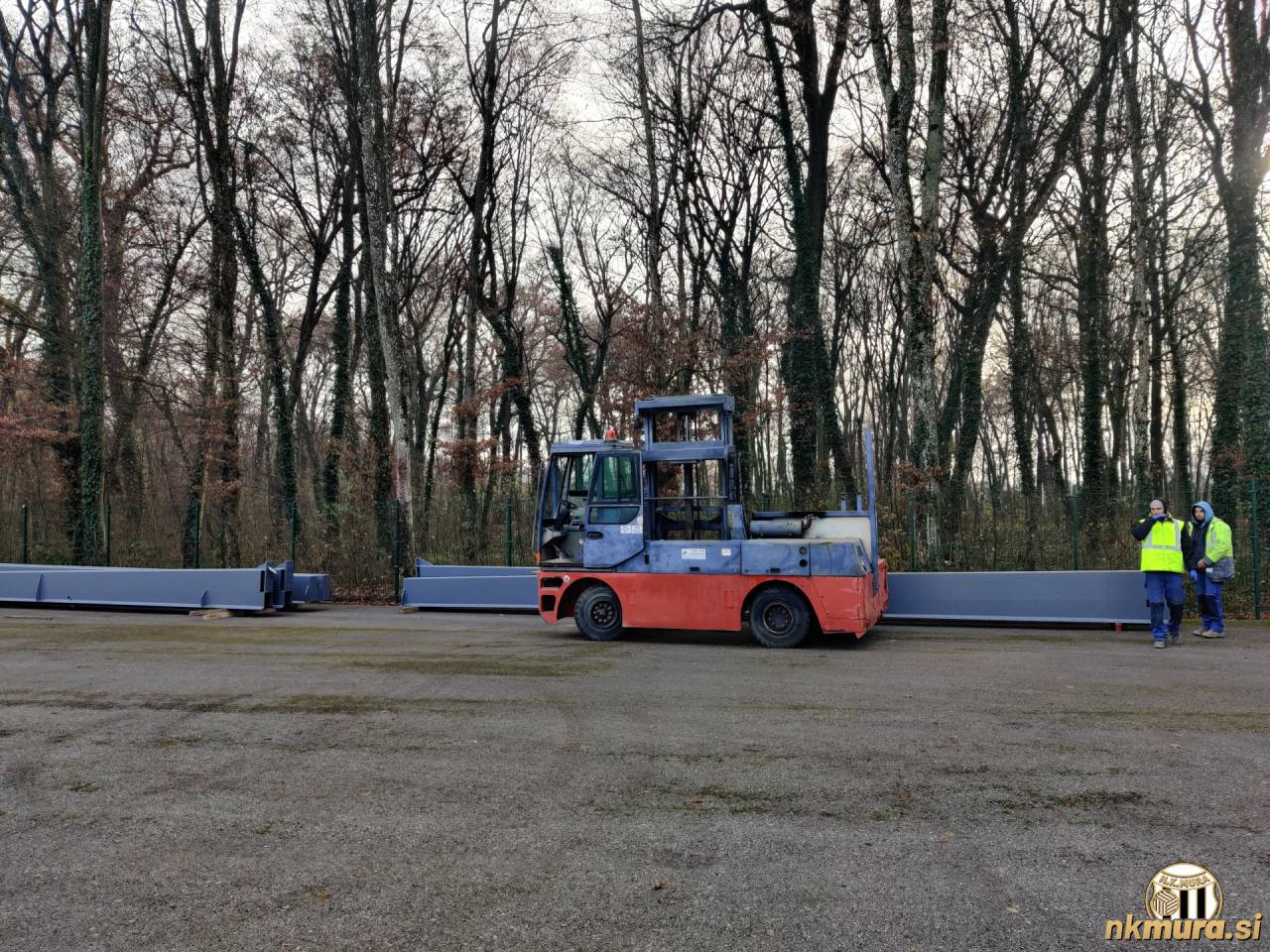 S postavitvijo bodo pričeli v prihodnjih dneh, najprej pri severni tribuni. Nekaj težav jim bo povročal le majhen in zožen prostor ob Ledavi.