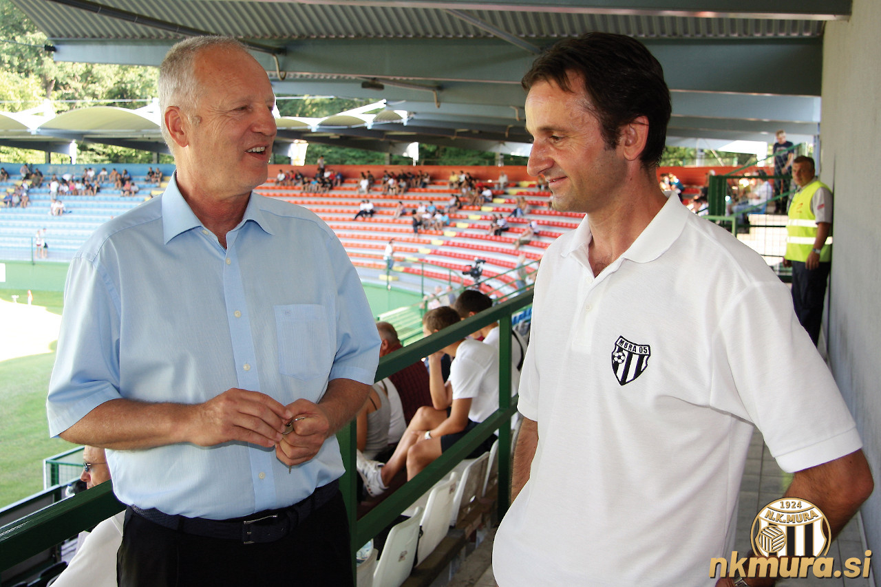 Brane Florjanič (predsednik združenja prvoligašev) in Miroslav Topič (predsednik Mure). Avtorske pravice: nkmura.si Foto: Gregor Čiček