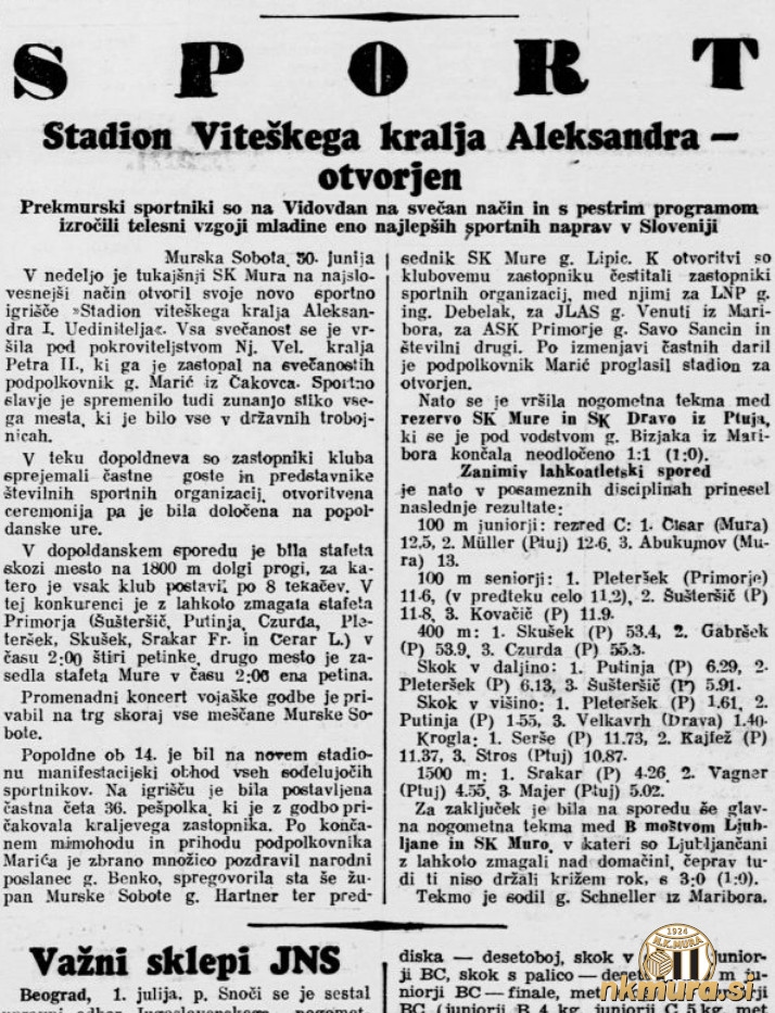 V okviru otvoritve novega stadiona Mure v Fazaneriji so črno-beli odigrali tekmo proti Ljubljani. Ljubljana je na novo ustanovljen klub, naslednik AŠK Primorja. Ljubljančani, ki so nastopili z rezervno ekipo so slavili z 0:3. Ob polčasu je bilo 0:1.