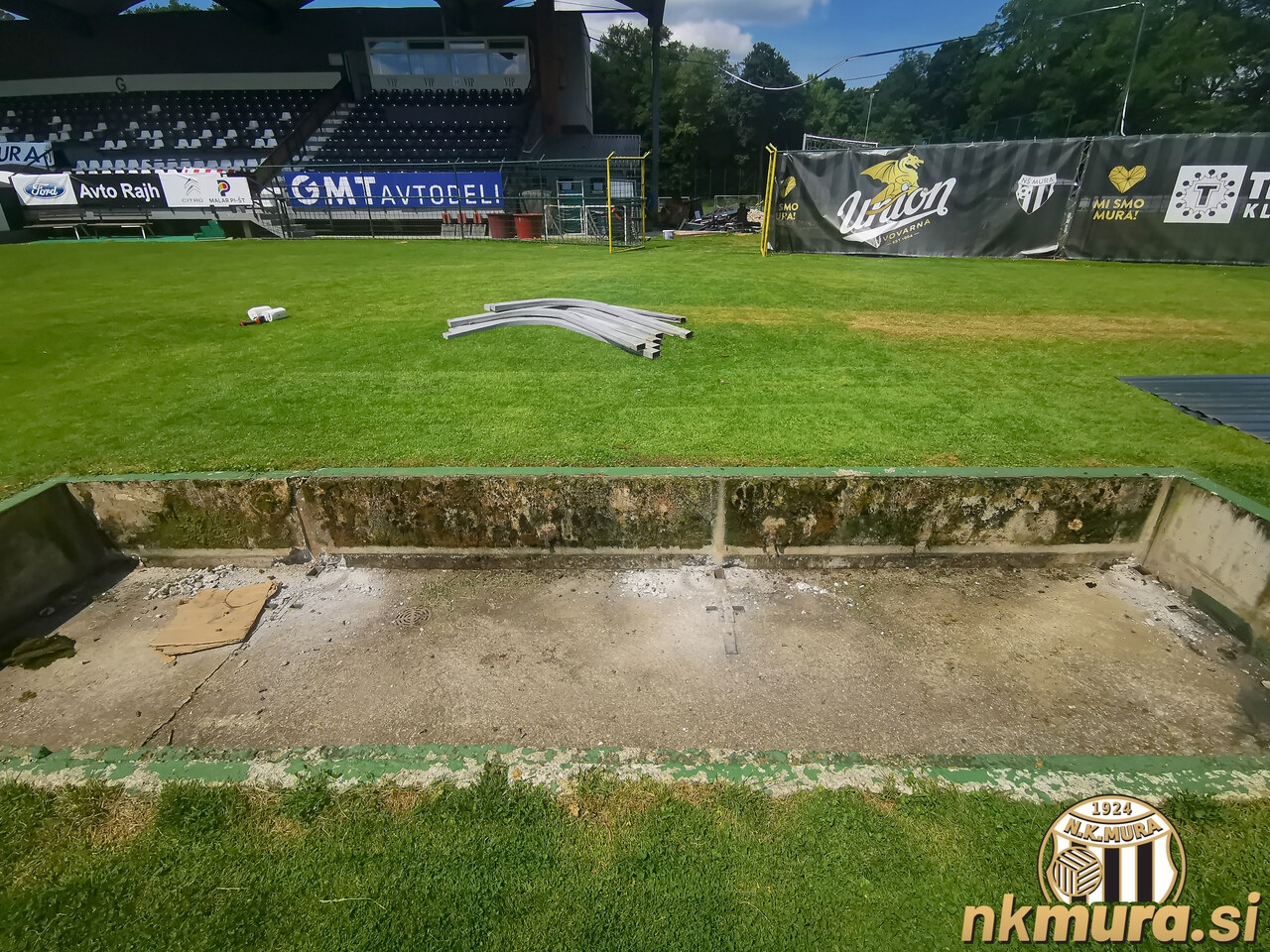 Na stadionu so porušili klopi za rezervne igralce, ki ji bodo zamenjali s sodobnimi premičnimi sedeži. Predvideno je zasutje obeh jam, kajti največjo nevarnost predstavljajo betonske obrobe, ki niso v skladu s standardi UEFE. Enako velja za prostor med obema rezervnima klopema, ki je namenjen 4. sodniku.